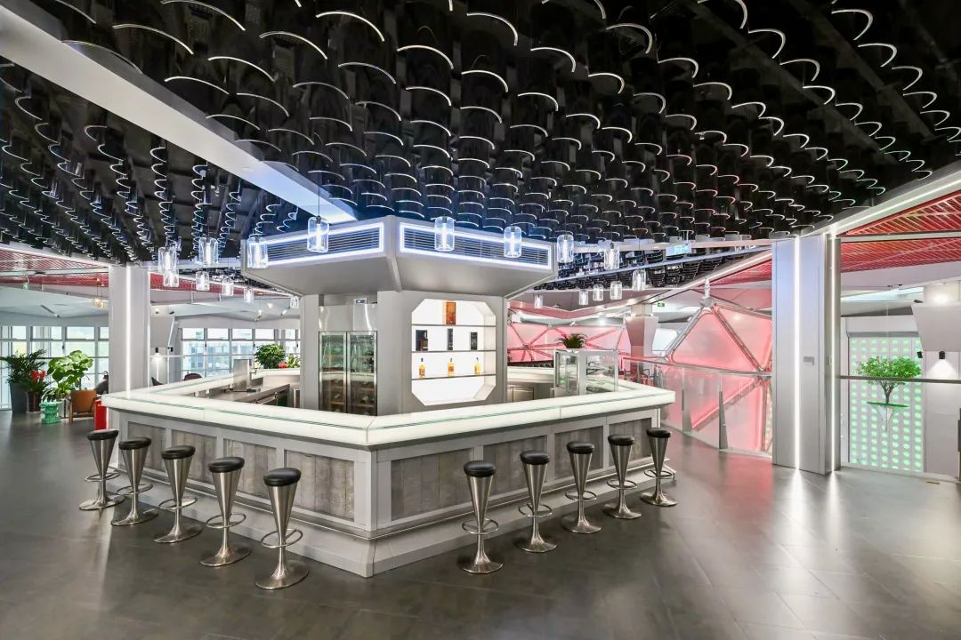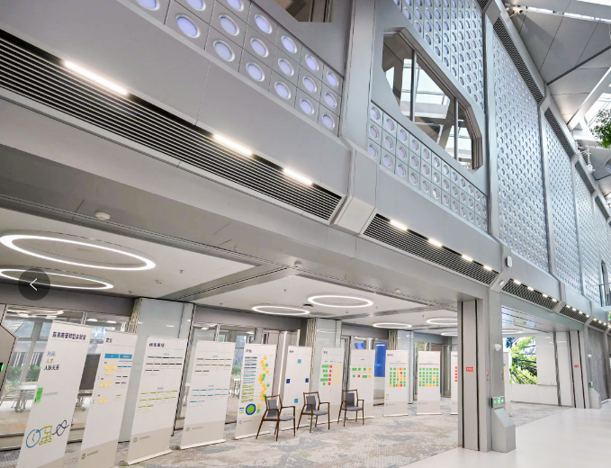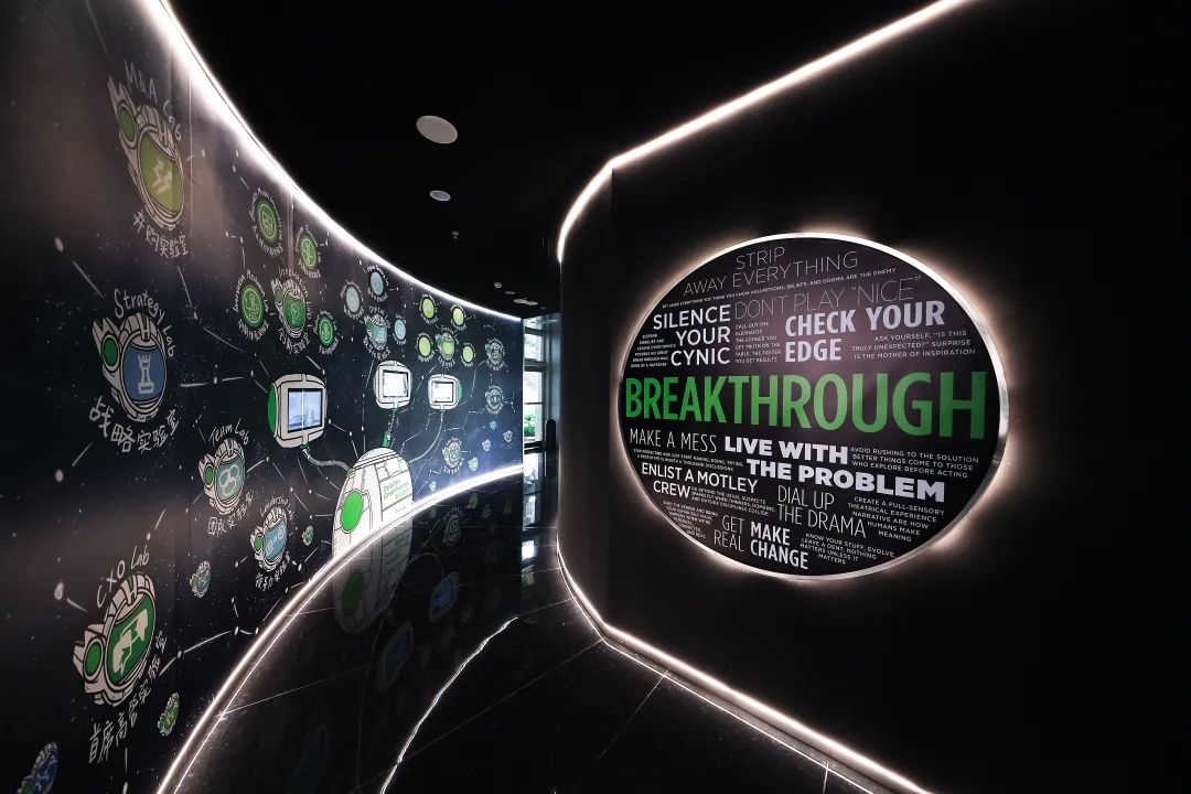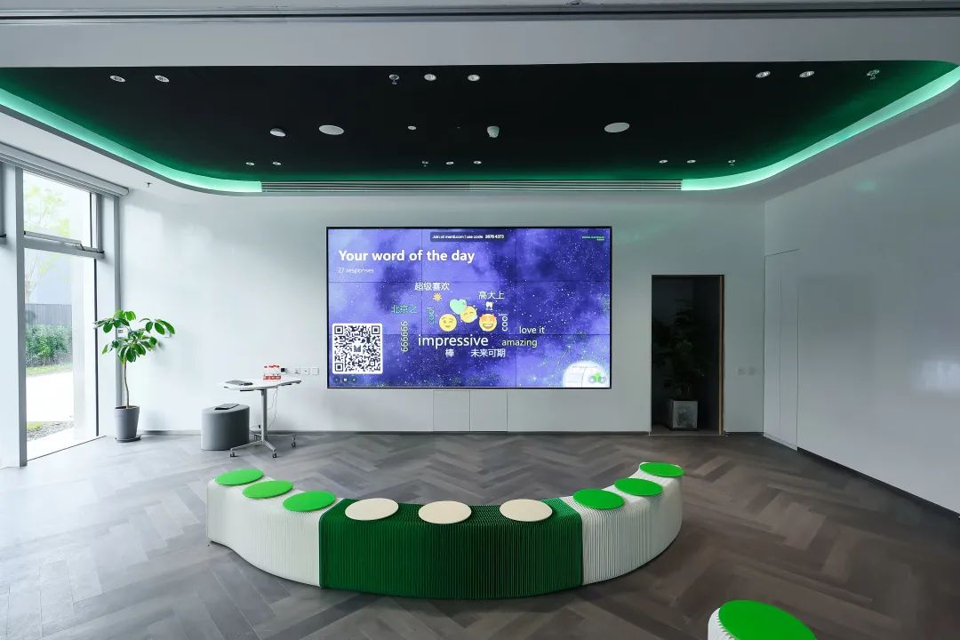 智慧+科技+未来=磁力墙贯穿整个建筑中庭的“磁力墙”是 德勤书院“智慧有感”“科技有感”“未来有感”的直观体现。引力墙作为德勤书院智慧建筑的一大重点设计,结合了智能材料和建筑设计的理念,可实现对建筑内部空间颜色展示的灵活调整,增强建筑的智能化和功能性。引力墙通过DMX调光技术,可以随时变换颜色与点位,从而展示出不同的意义主题。