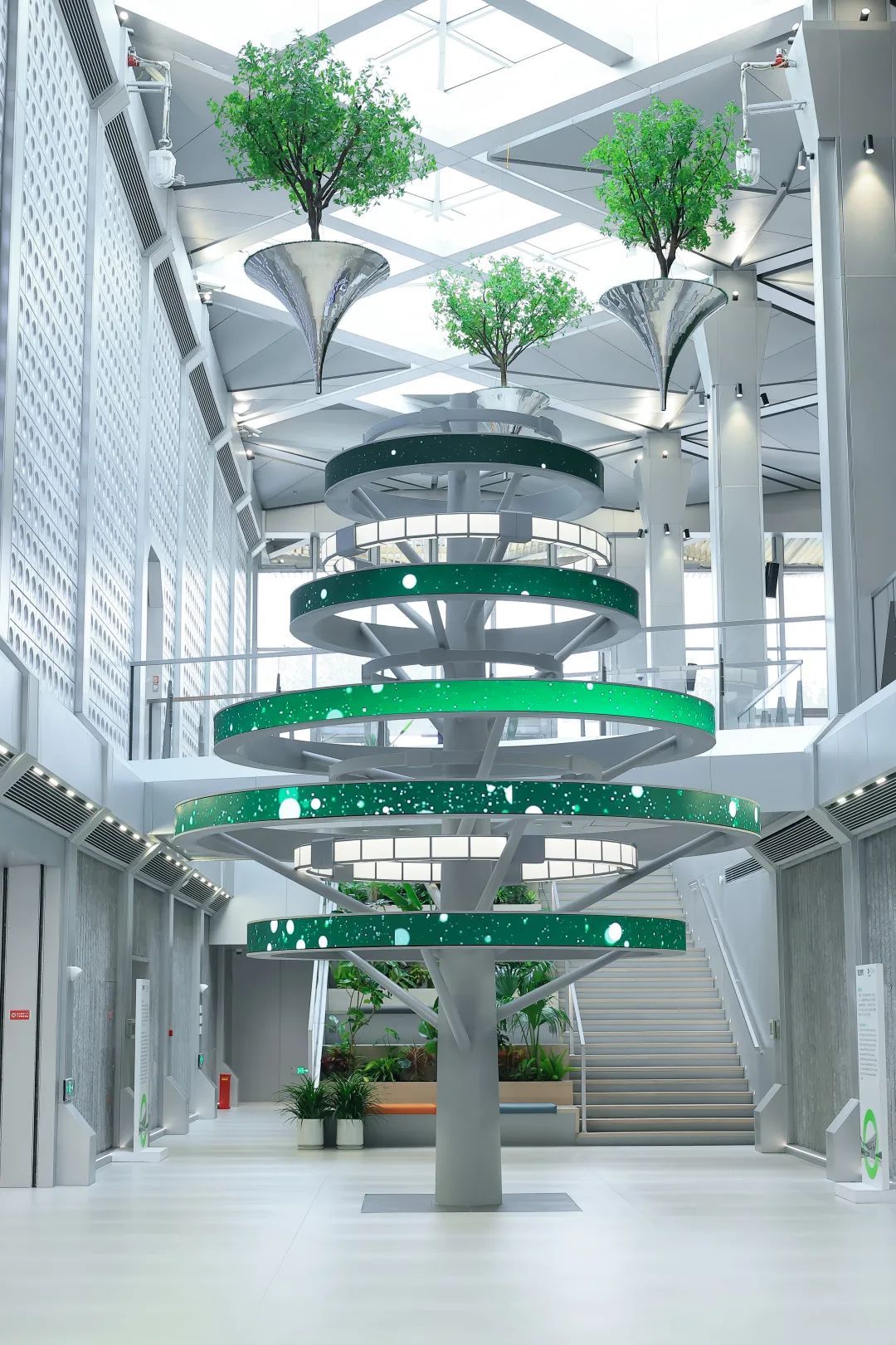 智慧树作为智慧建筑的一部分,显示建筑的知识力、环保力、健康力、友谊力、探索力。作为书院的标志性景观之一,智慧树既象征着知识的汇聚和生长,又旨在不忘初心,砥砺前行。