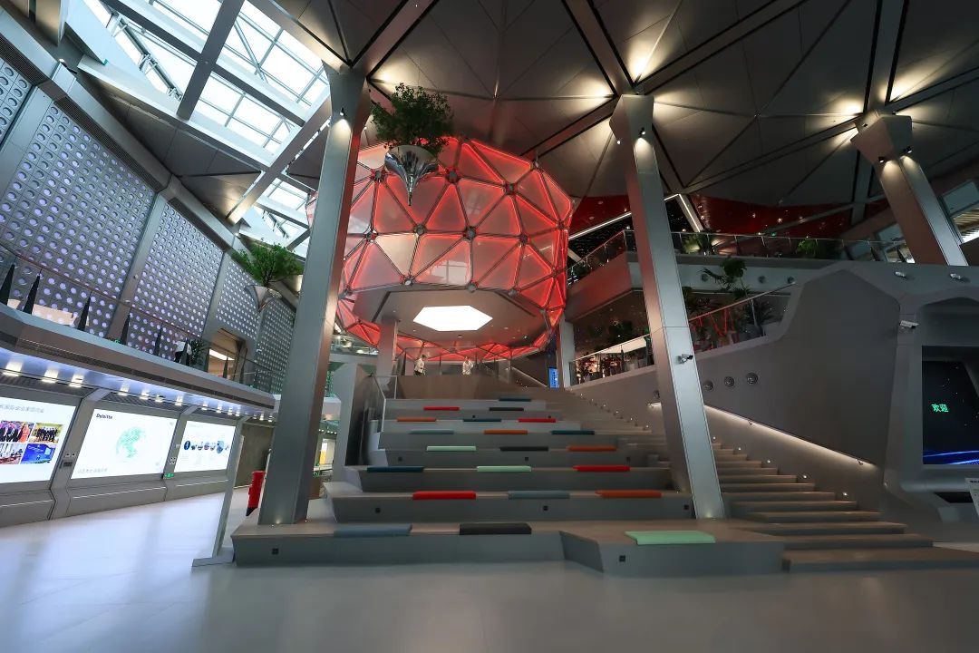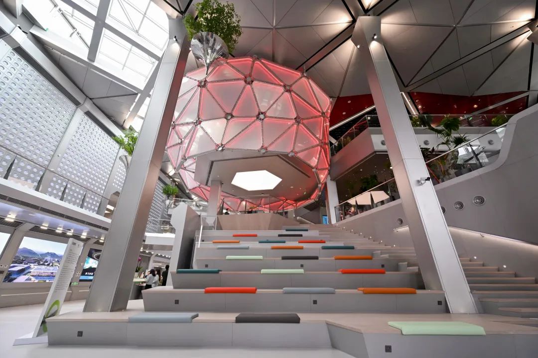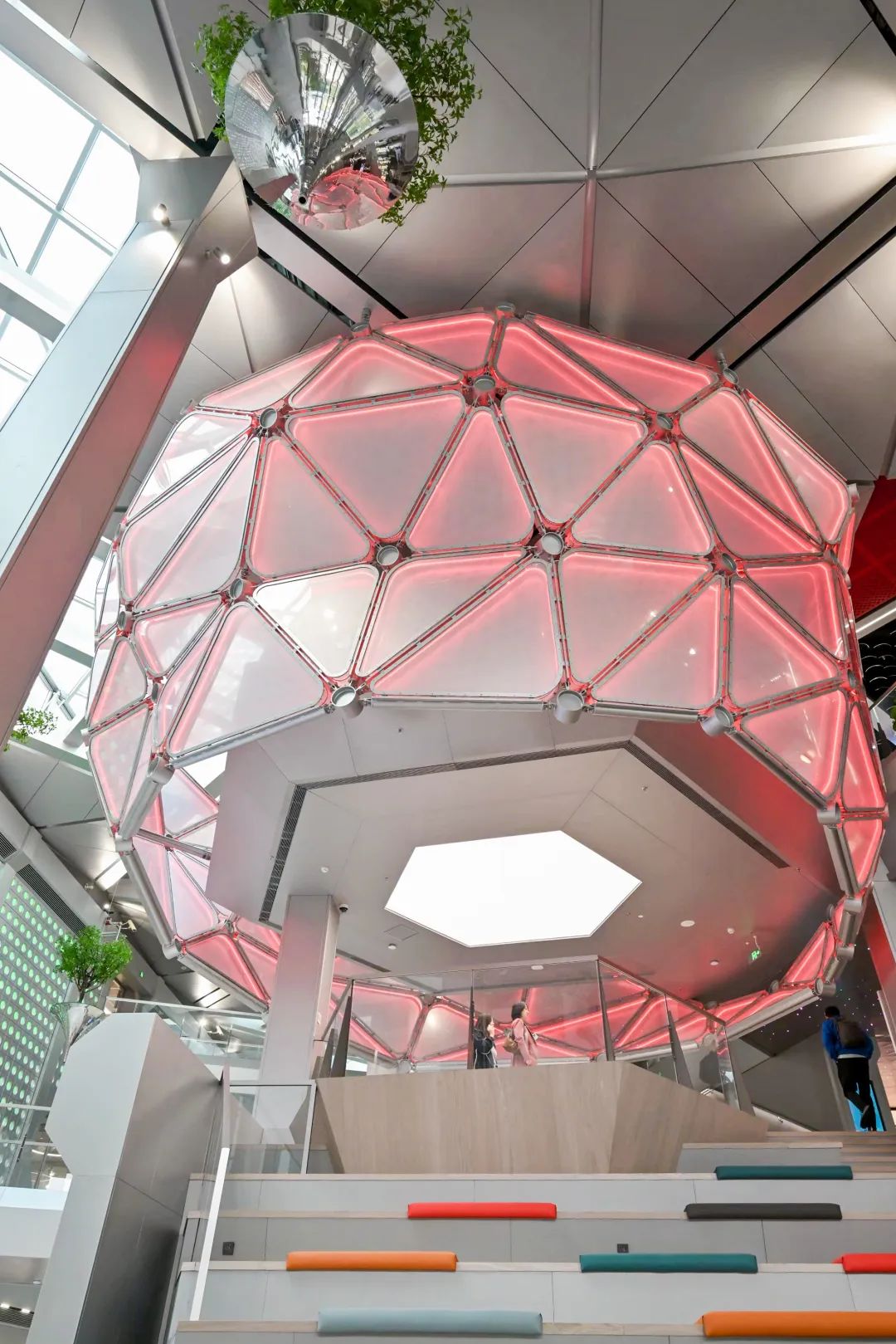运用ETFE高科技材料设计——中国大灯笼运用ETFE高科技材料设计的中国灯笼的造型,以现代设计呈现中国传统文化,同时作为智慧建筑设计的一部分, 灯笼可以切换不同灯光并创造出各种独特的视觉效果。