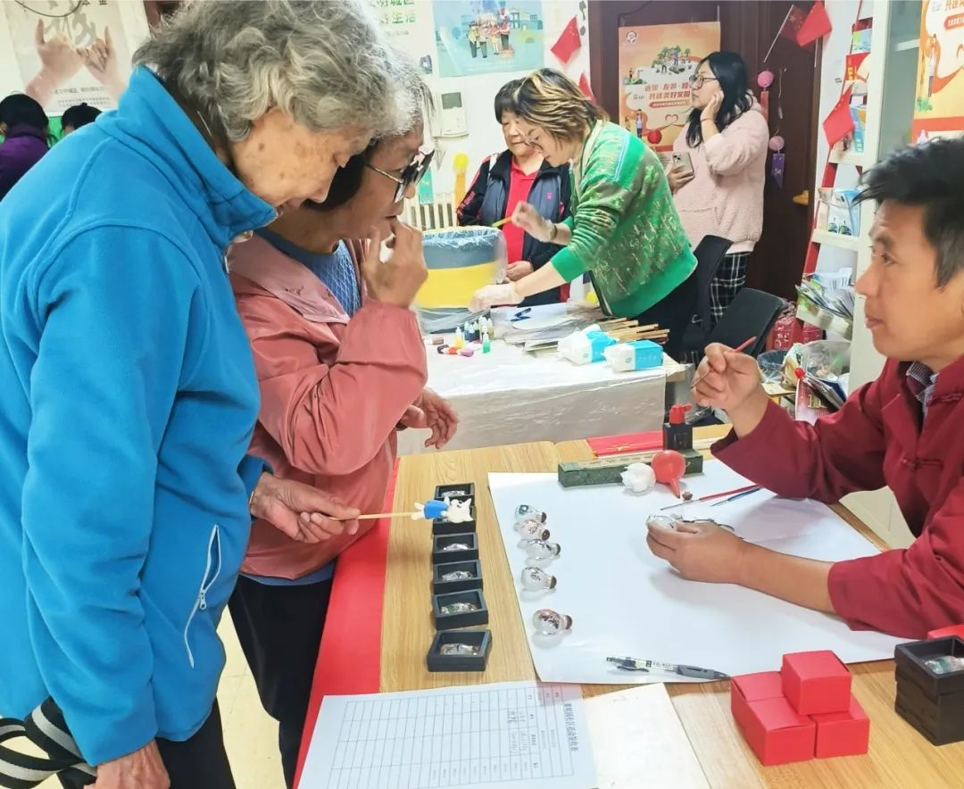 栩栩如生的沙燕风筝、典致风雅的漆扇、精细雅致的鼻烟壶……育慧西里社区非遗展示活动中,居民们近距离欣赏精美的手工艺品,共同领略非遗艺术魅力,感受传统文化的深厚底蕴。