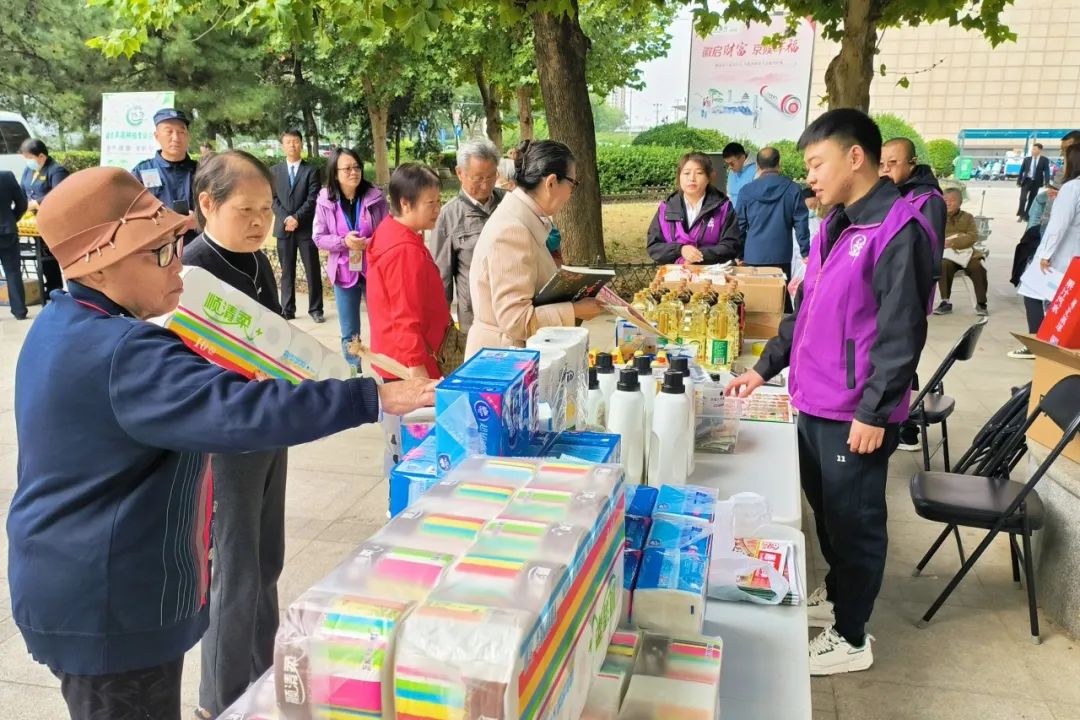 安慧东里社区邻里市集现场分为政策宣传、惠民售卖、便民服务及手工作品展示等区域,把优惠商品与便利服务送到居民“家门口”。
