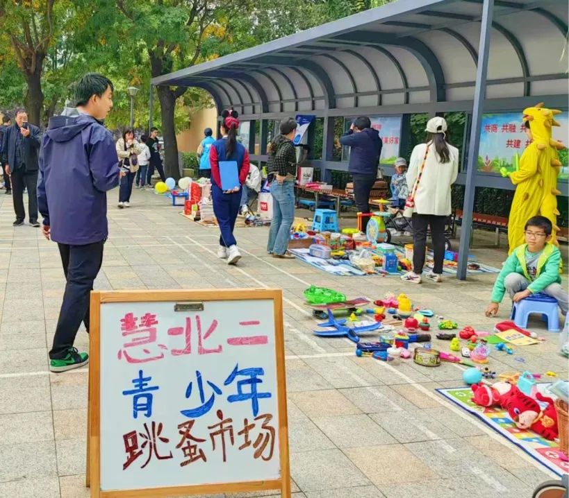 慧忠北里第二社区“宝宝”摊位上琳琅满目的商品让人眼花缭乱。孩子们通过交换和分享让“旧物”重获“新生”,培养勤俭节约美德,践行绿色低碳生活方式。