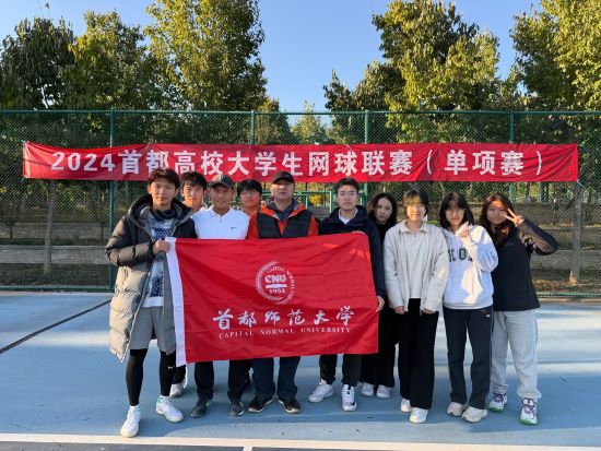 2024年首都高等学校网球联赛(单项赛)于10月19日在北京化工大学(昌平校区)落下帷幕。在冯峰、吴晓明两位老师的带领下,首都师范大学网球队队员郑云辰、翟炳杰、王泽昊、吴嵘炜、周子涵、曹昱阳、郭嘉宝、李若暄、吴树晟9位同学参加了比赛。