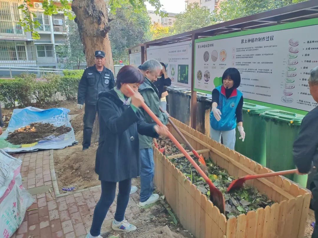“堆肥需要哪些材料?”“堆肥的顺序是什么?”在丽园社区小花园,20余名老党员一起体验厨余垃圾收集,到堆肥、成熟、堆肥产物施用全过程管理流程。