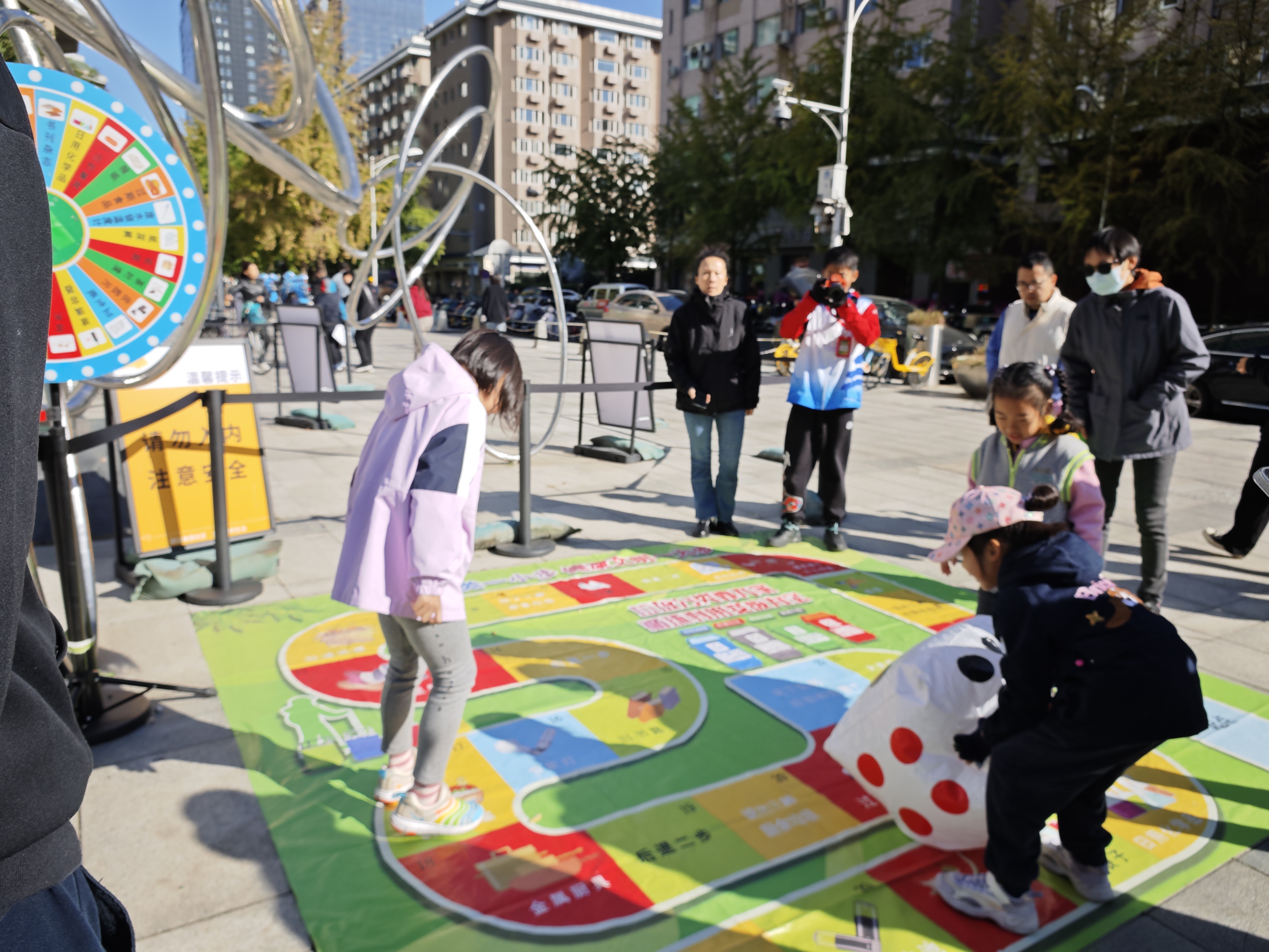 在游戏互动区里,趣味保龄球、投壶挑战赛、夹乒乓球、沙包等趣味性和竞技性兼备的活动吸引孩子和家长们纷纷组队打卡,找寻童年记忆,释放压力;在友邻拍照打卡区,各种丰富的场景布置更是吸引了许多青年停留,在背景板前拍照,记录美好瞬间……
