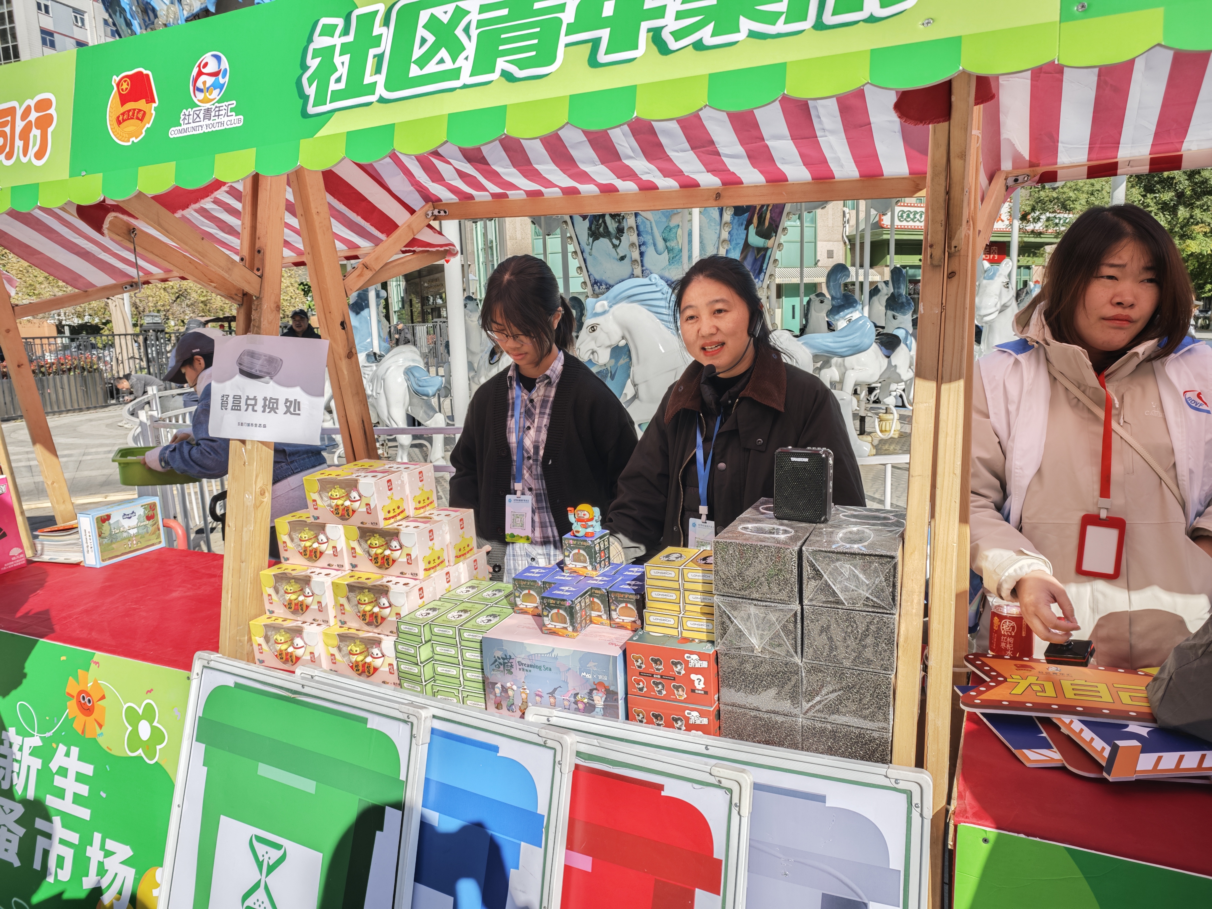 东环社区“跳蚤市场”上汇集了居民捐助的手工编织的毛衣和围巾、二手书和手工饰品,还通过小游戏寓教于乐推广环保理念,鼓励大家减少浪费,保护地球。这些活动不仅将闲置物品重新得以二次利用,更让居民们能感受到社区的温暖与力量。