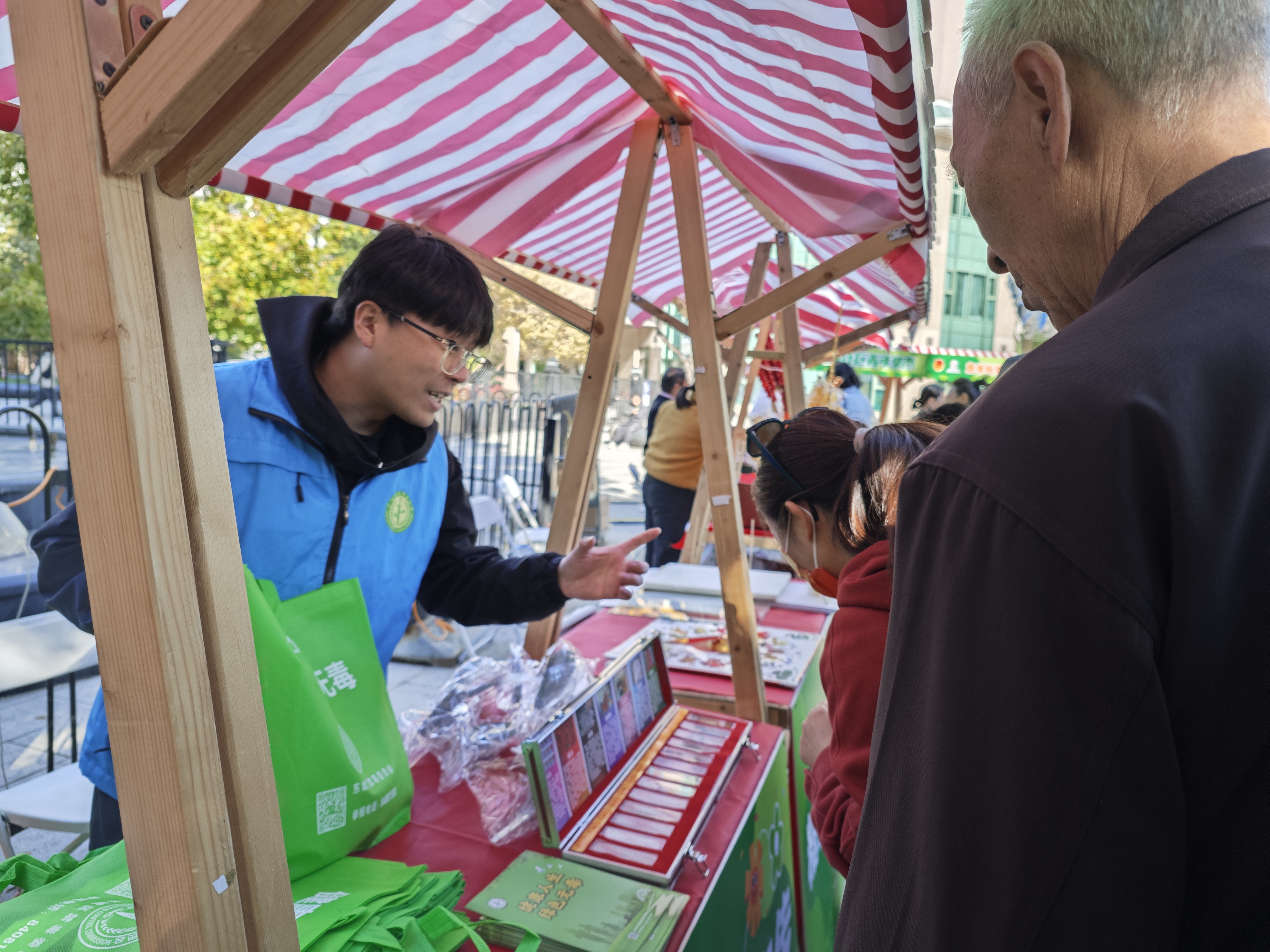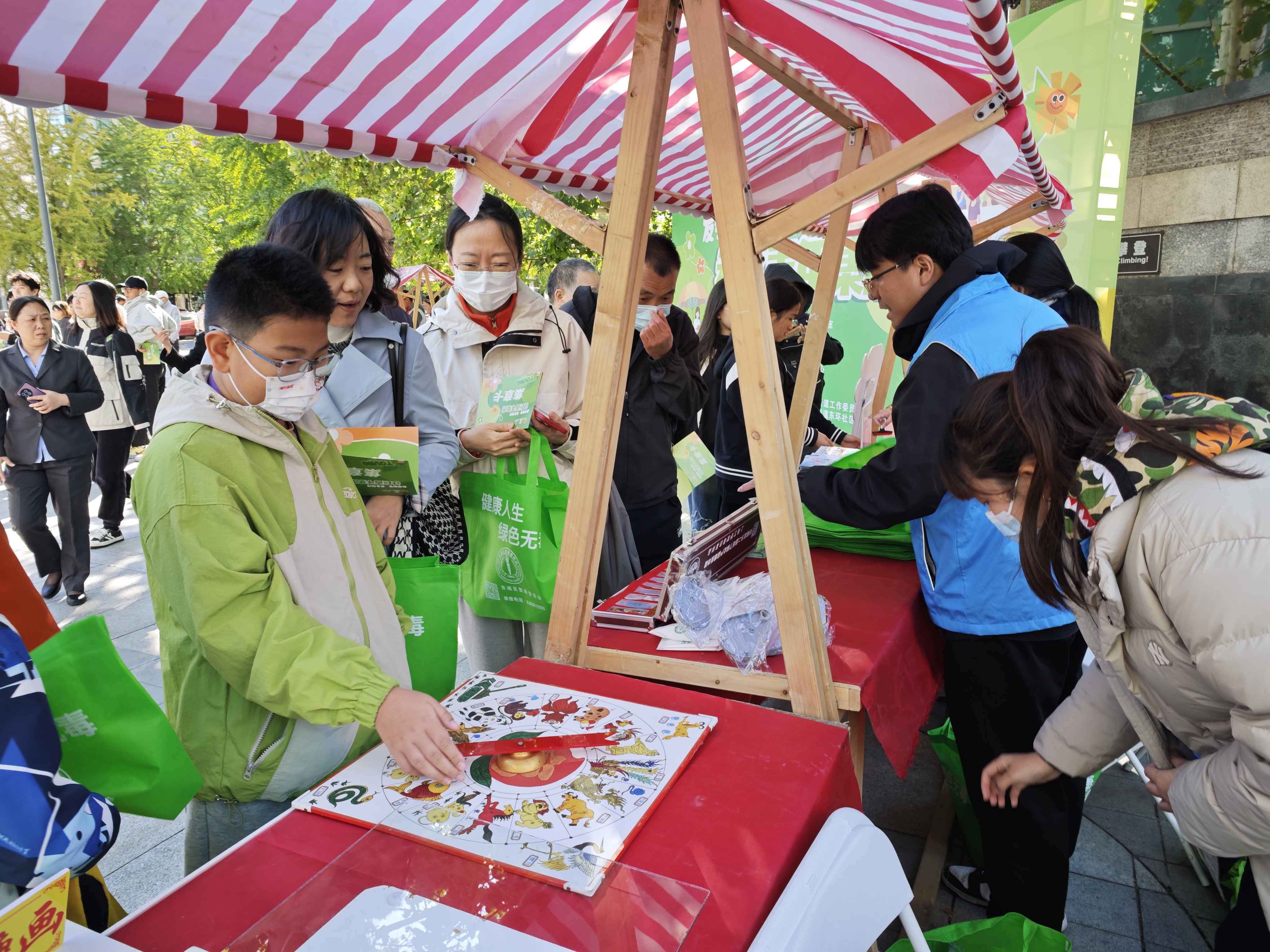 在志愿服务推广区,街道垃圾分类专班和社区青年汇“低碳生活从我做起”摊位通过现场宣讲、折页发放、展板展示、游戏互动等形式,现场还进行了民族共同体教育宣传,积极向社会宣介东城团员青年积极参与垃圾分类火热实践,阐扬社区青年汇在推动社区建设、基层治理中的生力军作用。