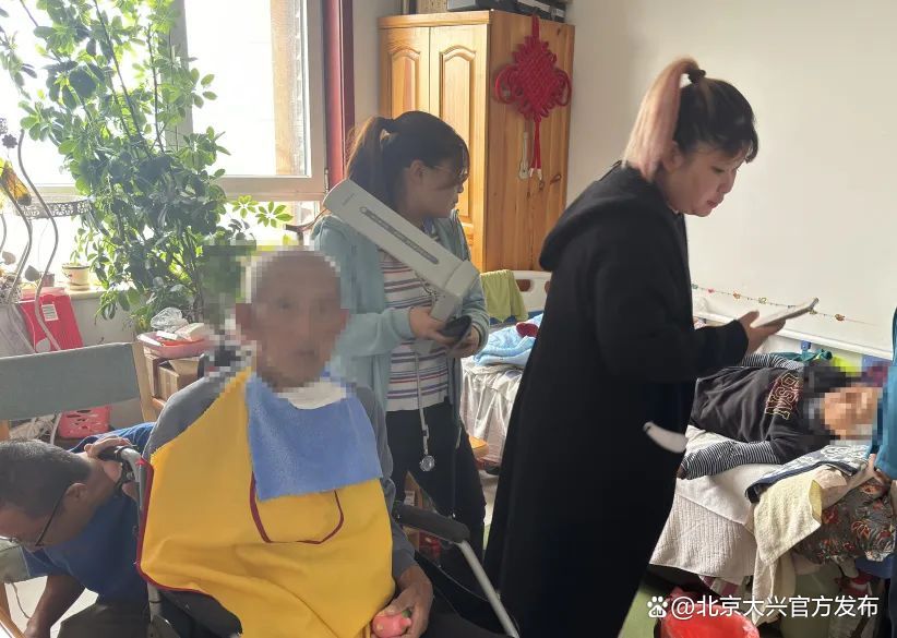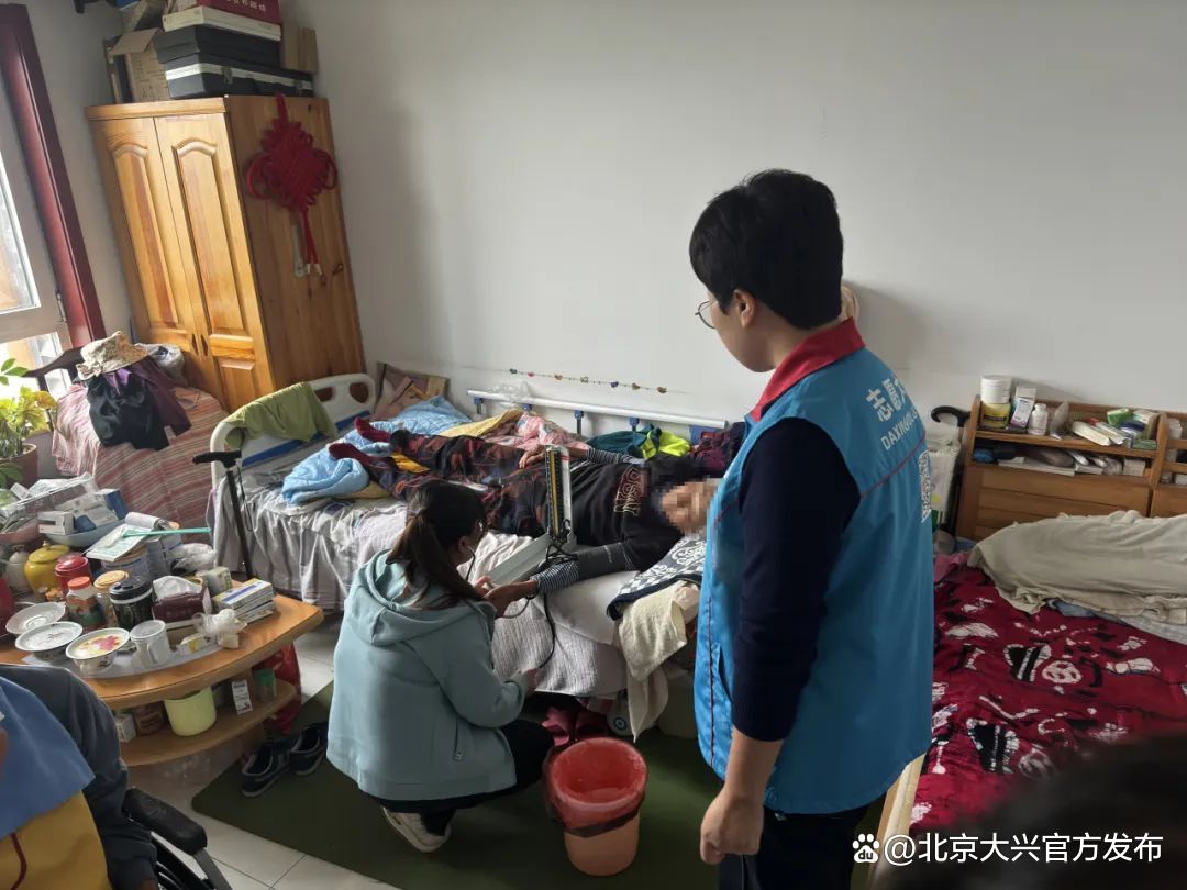 工作人员为老人们测量了血压,详细询问了他们的健康状况,并在认真听取需求、征询意见后,为老人们免费提供家庭养老照护床位服务,包含适老化改造,以及每月上门提供理发、修剪指甲、协助洗澡等一系列服务。