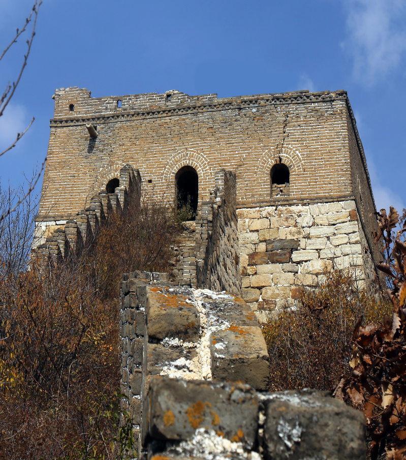 这段长城上,还有两处有名的地方,一处叫“48 蹬”;另一处是“硫磺坑”。“48蹬”是中途很陡的那段台阶,“硫磺坑”则是当年士兵存放点火用硝磺的地方。