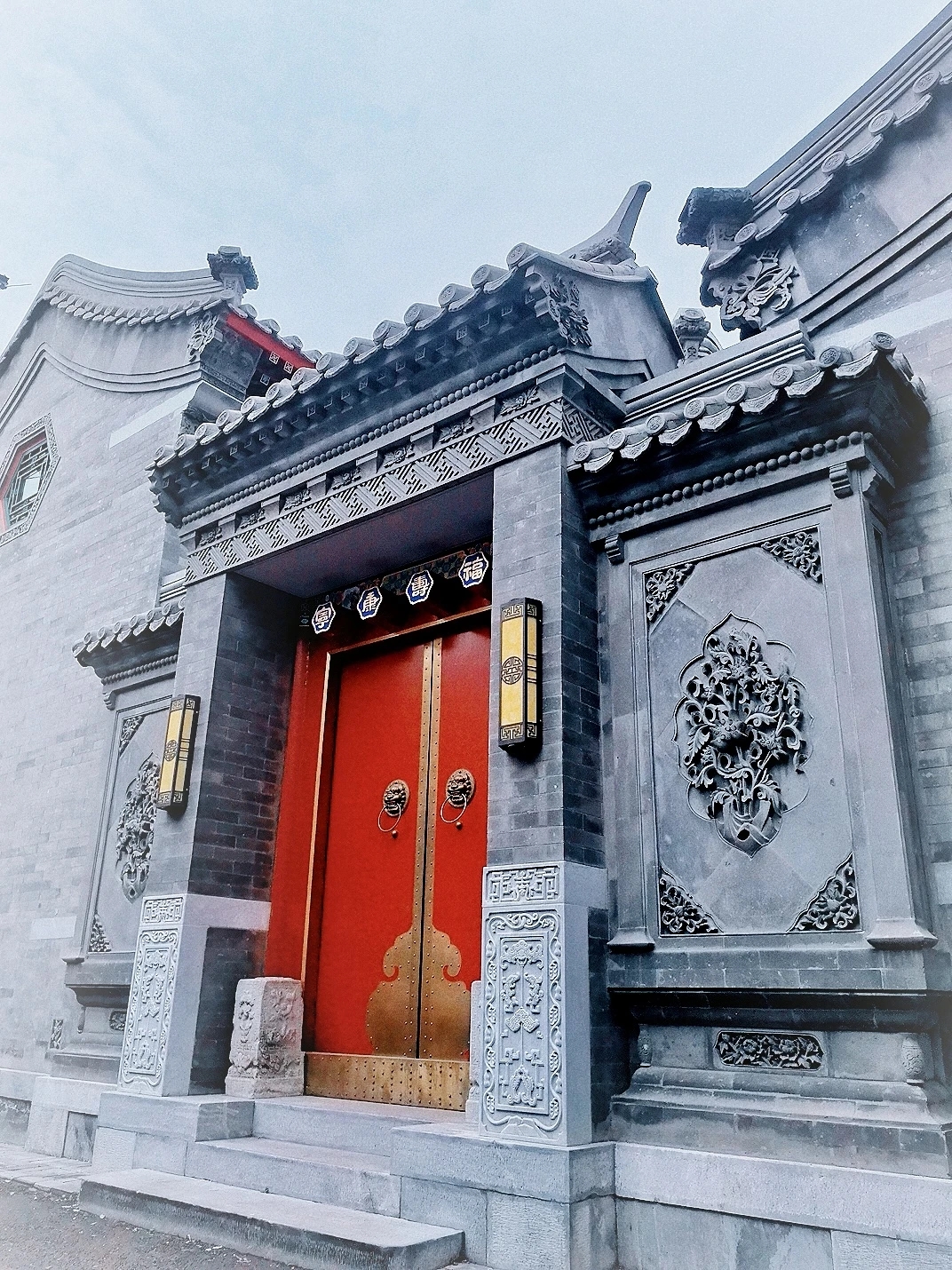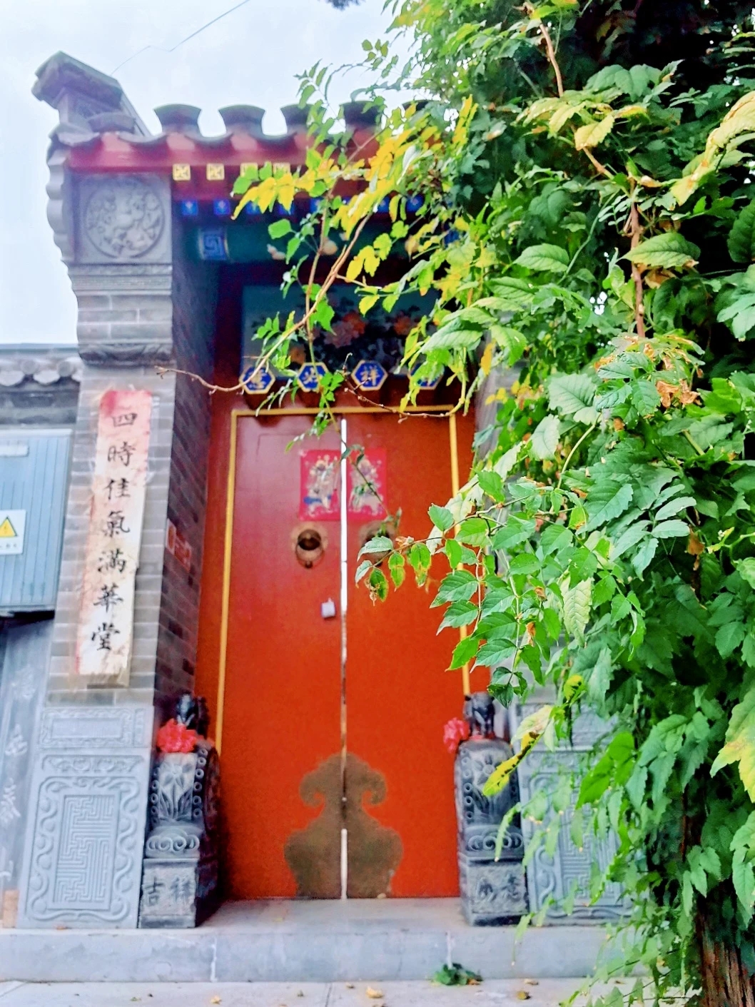 红门灰瓦的四合院……