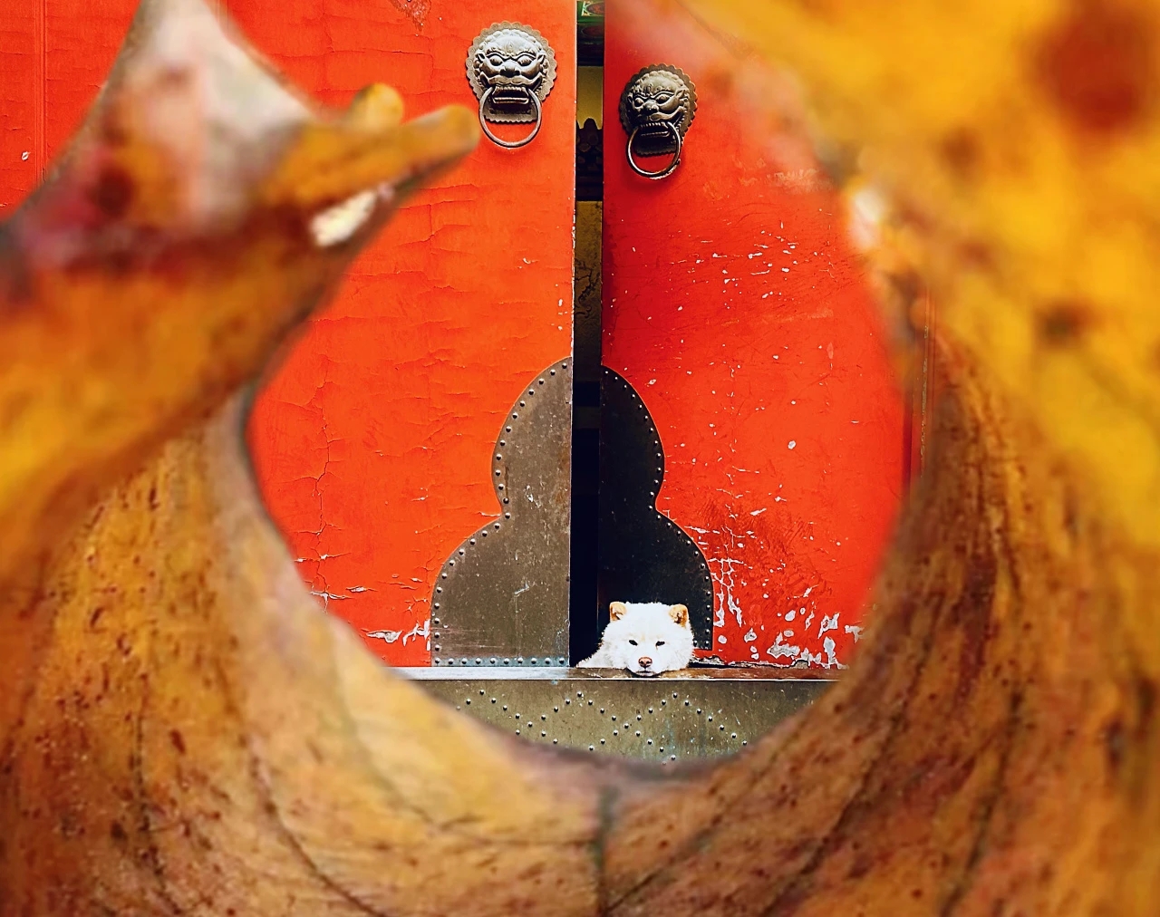 蹲坐的石狮子
