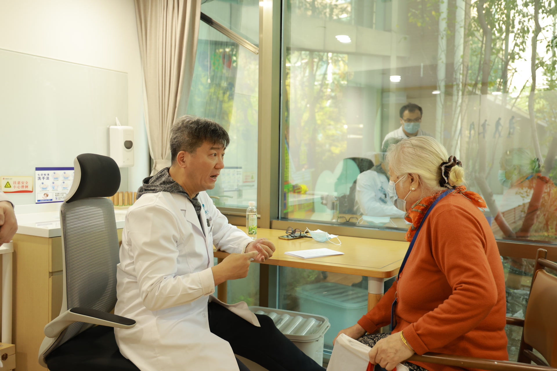 在巡诊过程中,皮肤科刘爱英主任亲自走进房间,为行动不便的老年人进行床旁问诊。她细心地检查老人们的皮肤状况,耐心地解答他们的疑问,让老人们感受到了医者仁心的温暖。同时,肾内科许焱主任通过细致的查体、详细的病史询问和专业的医疗检查,及时发现并处理了老年人的健康问题,有效避免了病情的恶化。