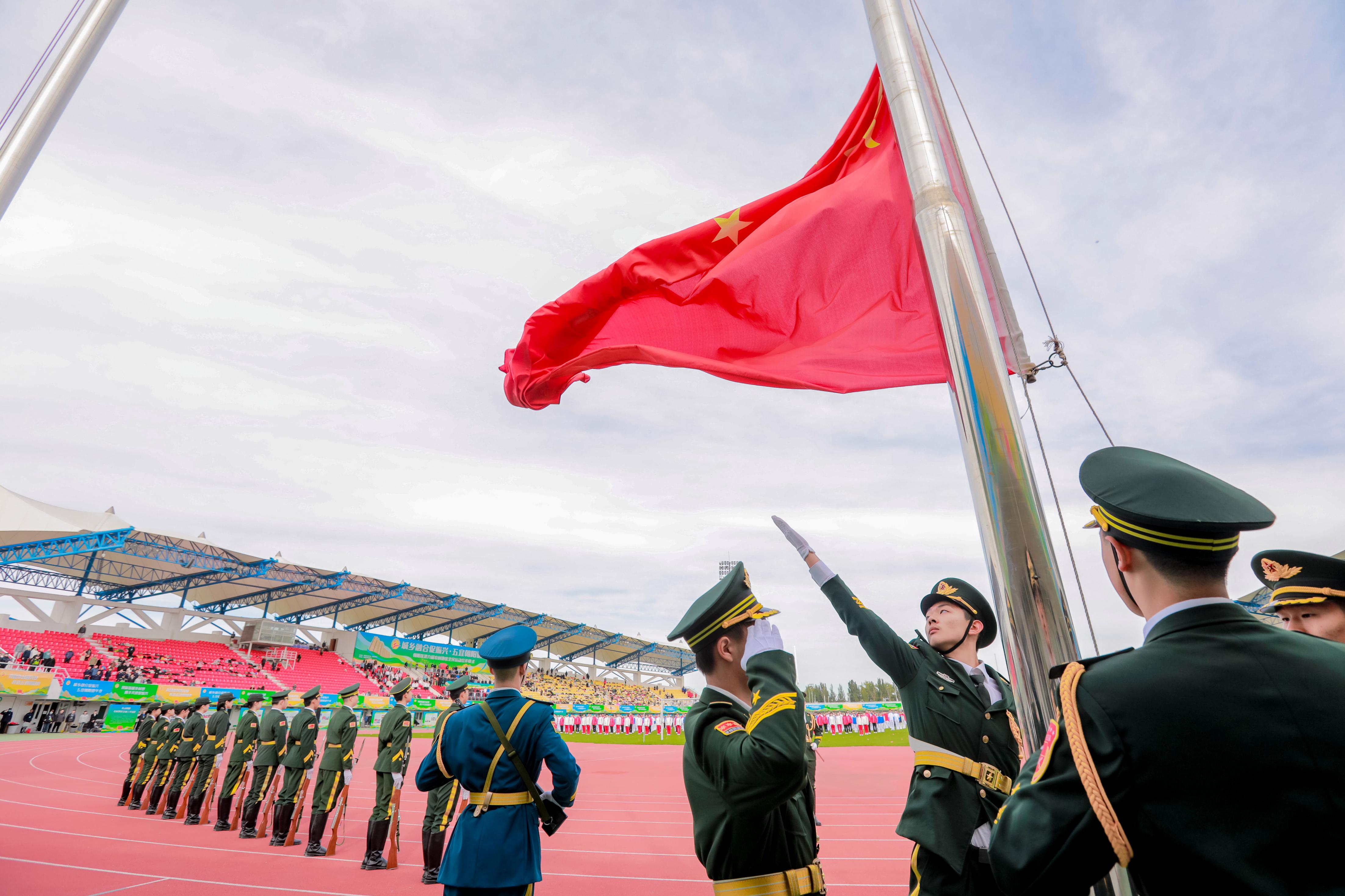 在庄严的国歌声中,由将台乡清华附中国旗班组成的国旗方阵护送着五星红旗走向主席台。28名旗手步伐矫健、英姿飒爽,他们不仅代表着朝阳区农村地区的青春活力,更寄托着对未来的无限憧憬。五星红旗高高擎起,激励着每一位现场观众为实现乡村振兴高质量发展、建设五宜朝阳而不懈奋斗。