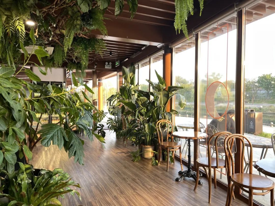 清河之洲基本元素咖啡,在自然的河畔传递着温暖,倾听着游人与自然与河水的故事,咖啡香气环绕着绿植,阳光透过窗棂,每一寸光影都为你量身定做。