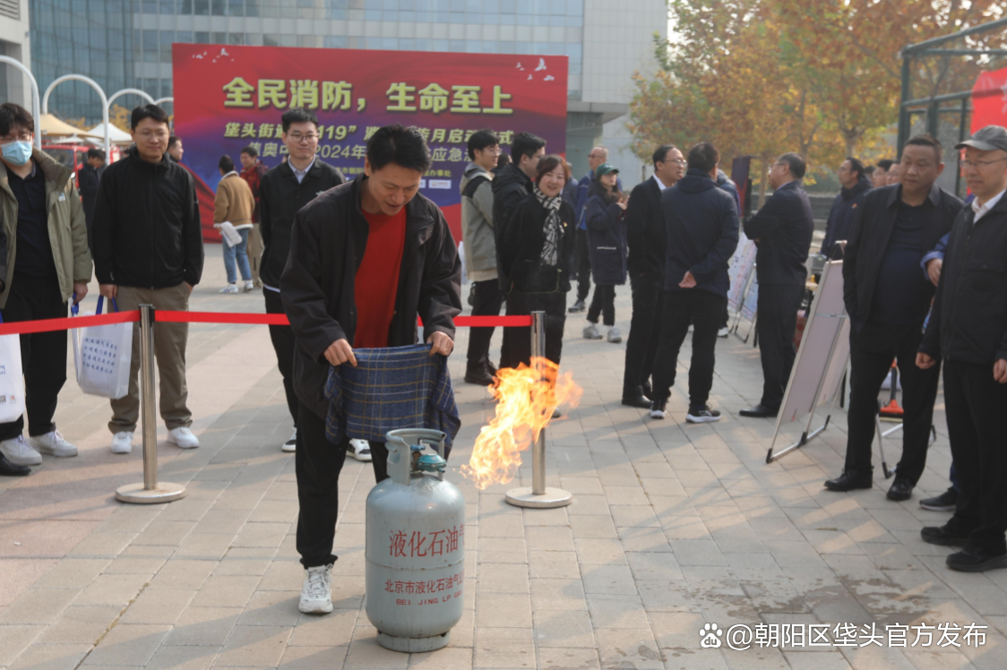 垡头街道工委书记杨立亭,垡头街道办事处主任张立云,北控集团党委书记、董事长田振清,北控集团安全环保部总经理李聪,北燃实业集团副总经理井帅参加启动仪式,北燃实业、北京燃气、北京液化气、焦奥物业及各社区居民代表共计500余人参加活动。活动现场精心设置了模拟疏散逃生、消防设施使用讲解、消防知识有奖问答、高层建筑灭火演练等多个模块,参演人员积极互动、轮流实践操作,整个环节紧张有序,正式拉开了消防宣传月的序幕。