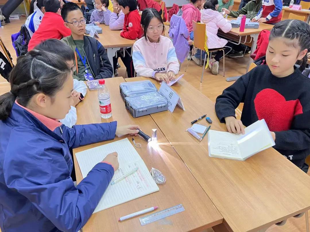 在“望远镜小能手”活动中,科技辅导员将启发式教学与探究式教学巧妙融合,为学生们打造了一个充满探索与发现的学习环境。通过一系列富有趣味性的光学实验,引领学生们循序渐进探索望远镜的光学原理,熟悉折射望远镜和反射望远镜的原理与结构;在动手实践环节,学生们热情高涨,相互交流、互相帮助,进行天文望远镜组装及观测。