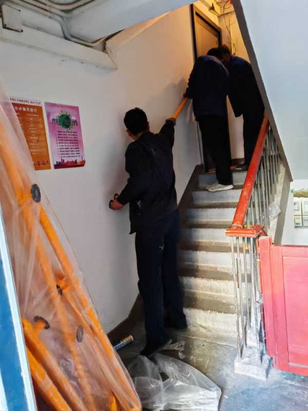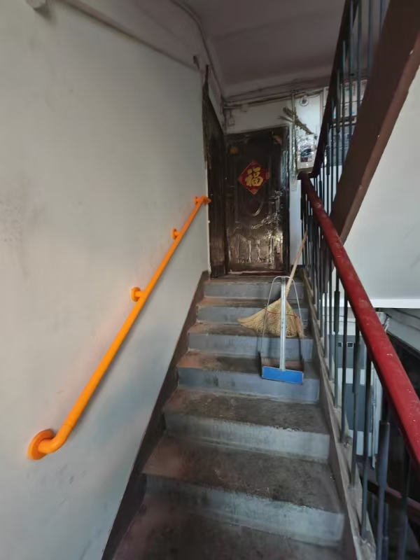 四平园小区是1996年建成的无物业管理的老旧小区,基础设施陈旧,没有电梯。居住在该小区5层的田欣然老人已年近80岁,自己和老伴身体都不好,平日上下楼成了老大难问题,老两口迫切希望在楼道内墙面安装扶手。