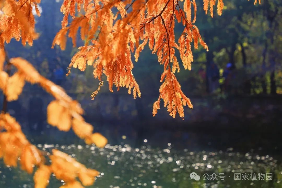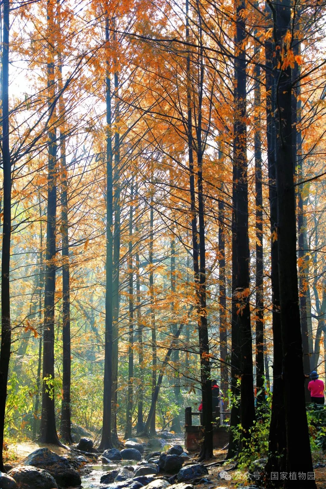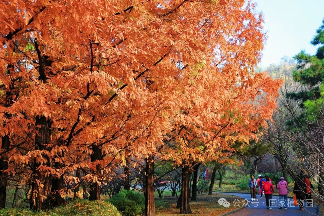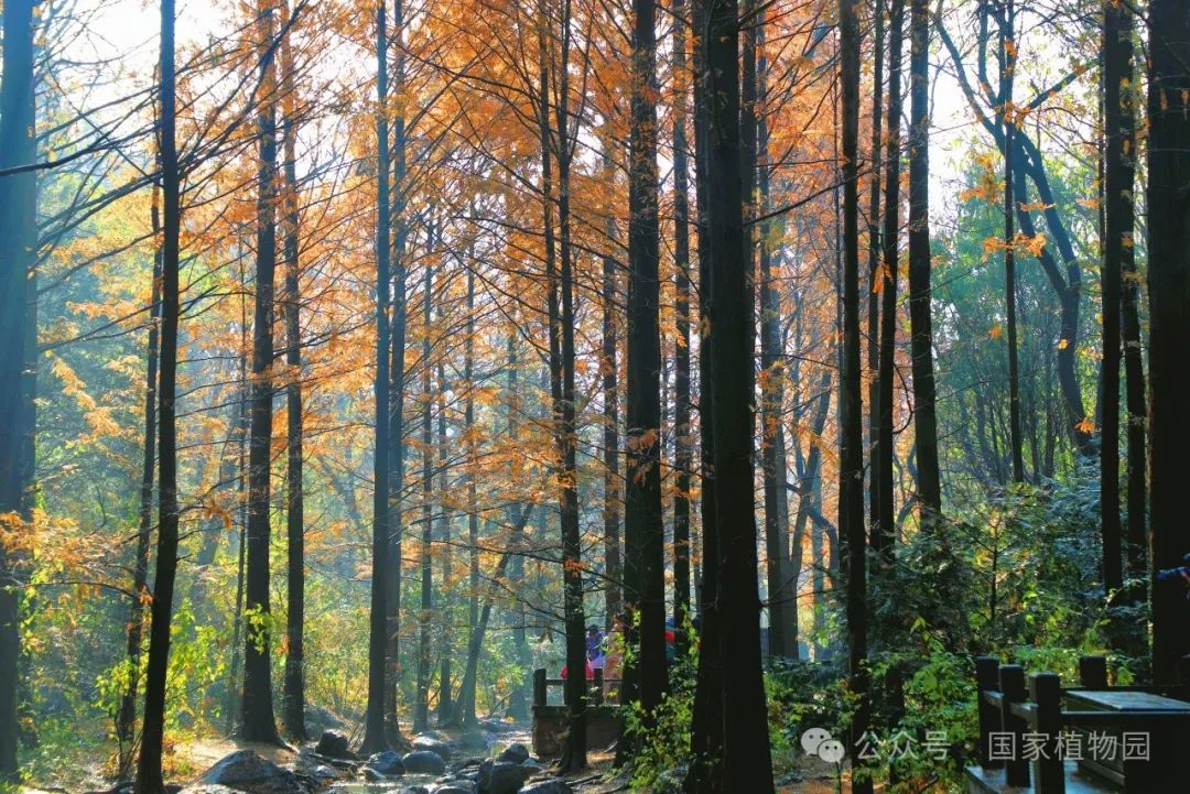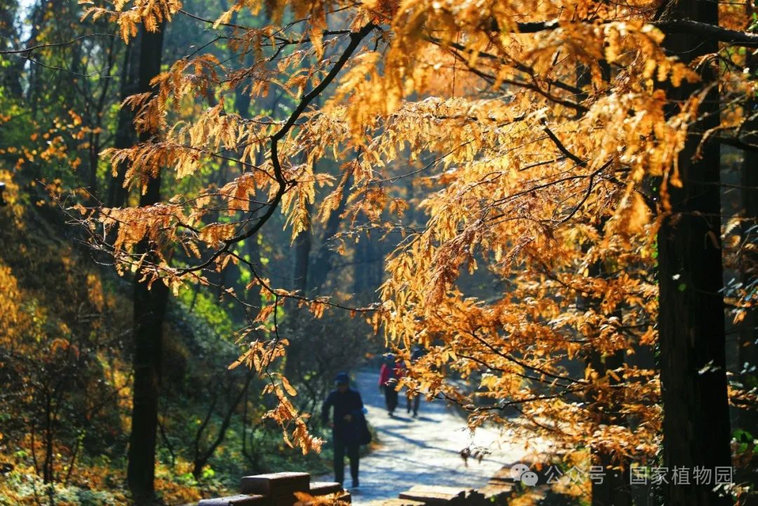 水杉姿态优美挺拔,春季绿叶婆娑,秋叶经霜变色。国家植物园(北园)樱桃沟内、北湖周边,国家植物园(南园)紫薇园南侧、宿根花卉园均可欣赏到水杉的身姿。