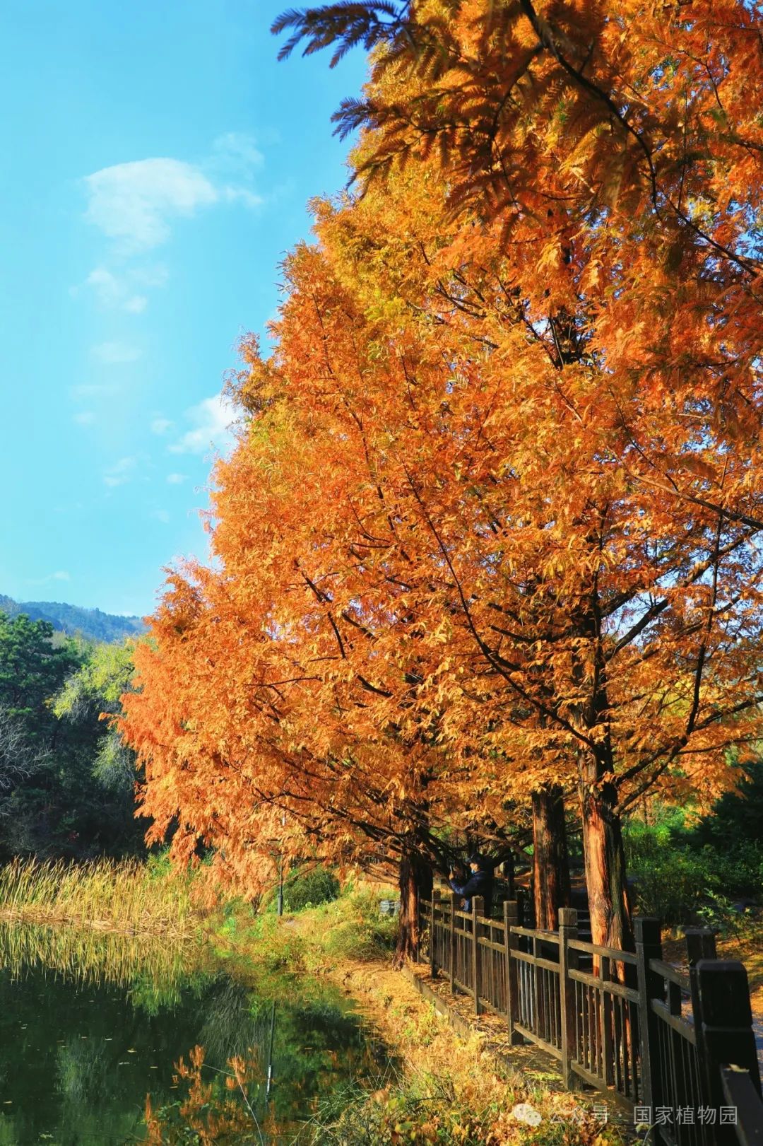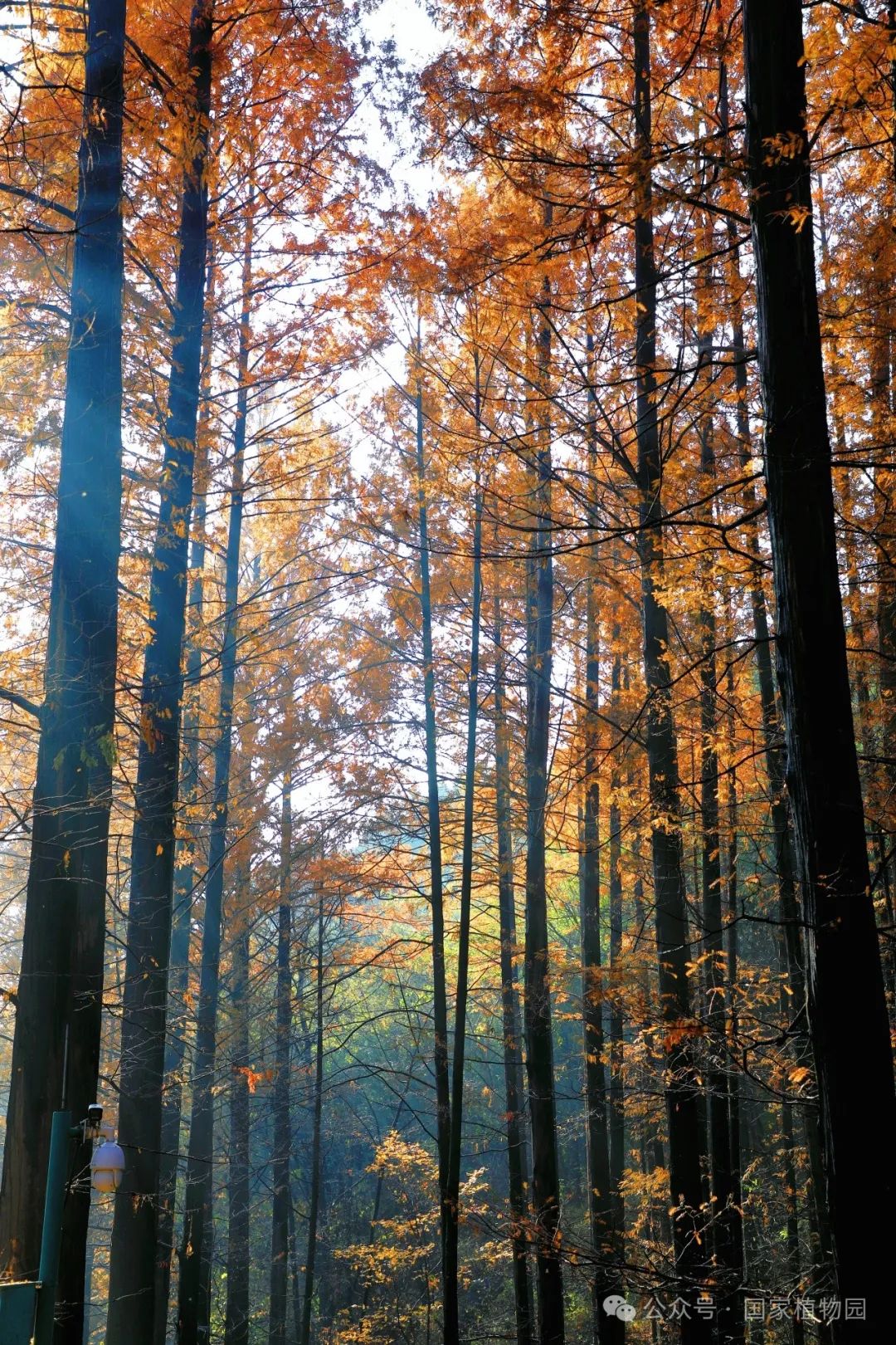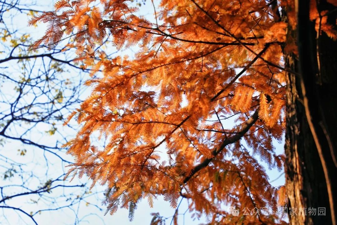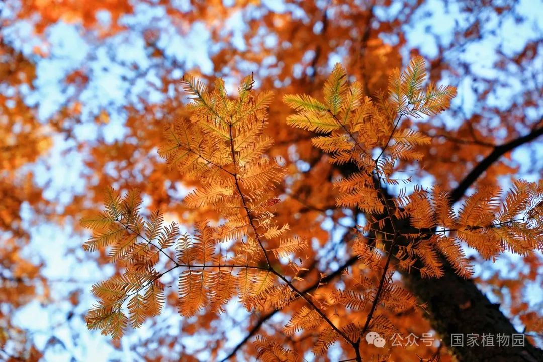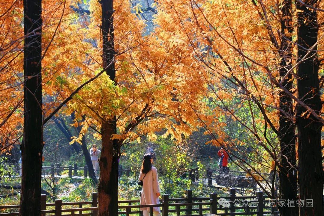 水杉姿态优美挺拔,春季绿叶婆娑,秋叶经霜变色。国家植物园(北园)樱桃沟内、北湖周边,国家植物园(南园)紫薇园南侧、宿根花卉园均可欣赏到水杉的身姿。