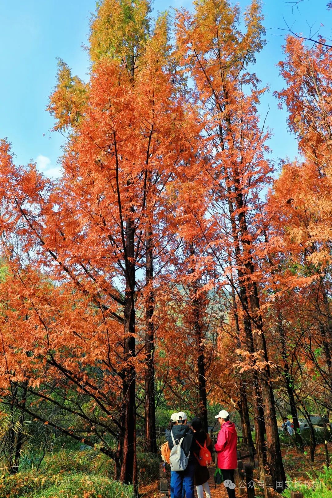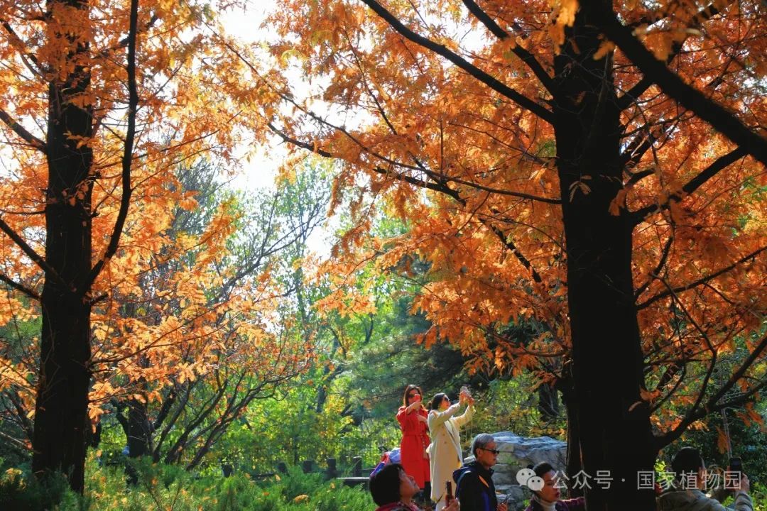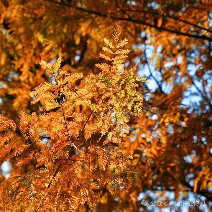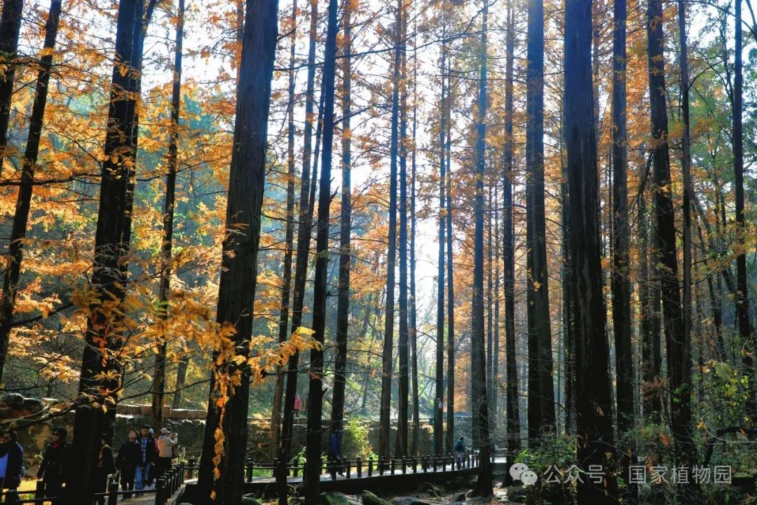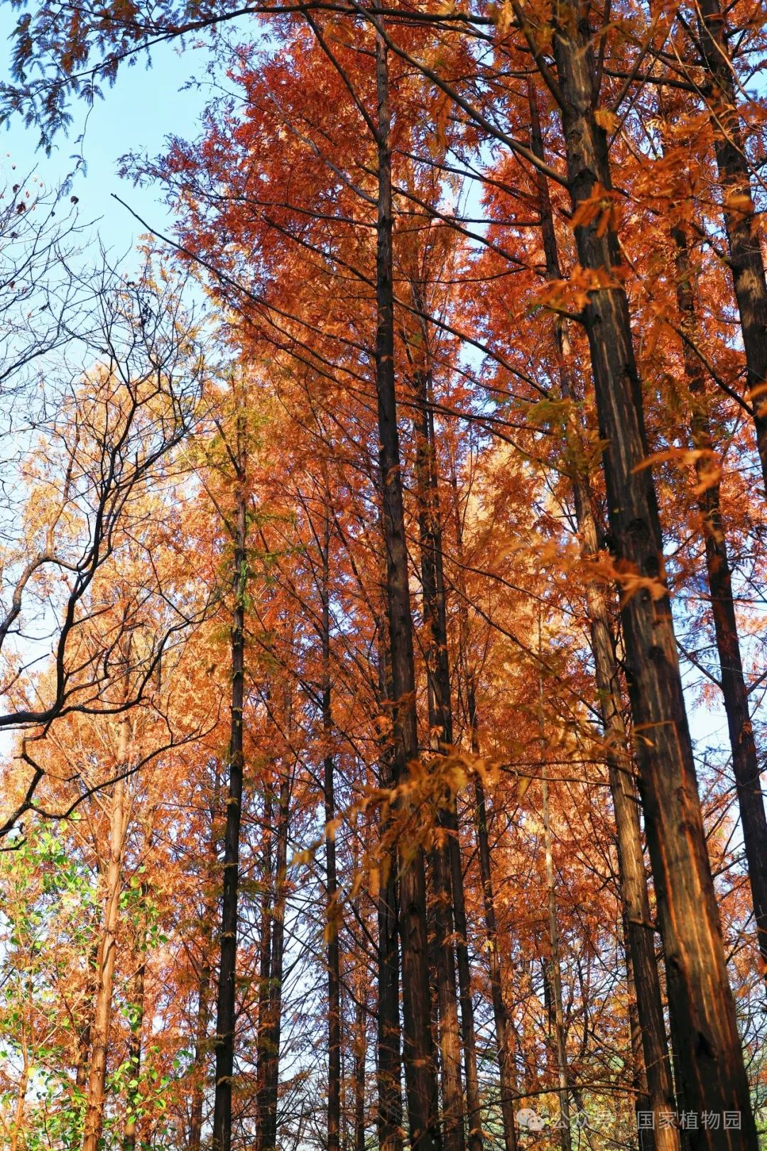 水杉姿态优美挺拔,春季绿叶婆娑,秋叶经霜变色。国家植物园(北园)樱桃沟内、北湖周边,国家植物园(南园)紫薇园南侧、宿根花卉园均可欣赏到水杉的身姿。