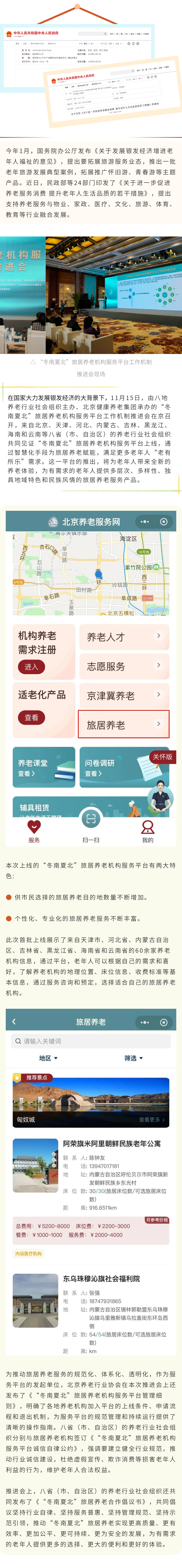 “冬南夏北”旅居养老机构服务平台正式上线!首批涵盖60余家养老机构