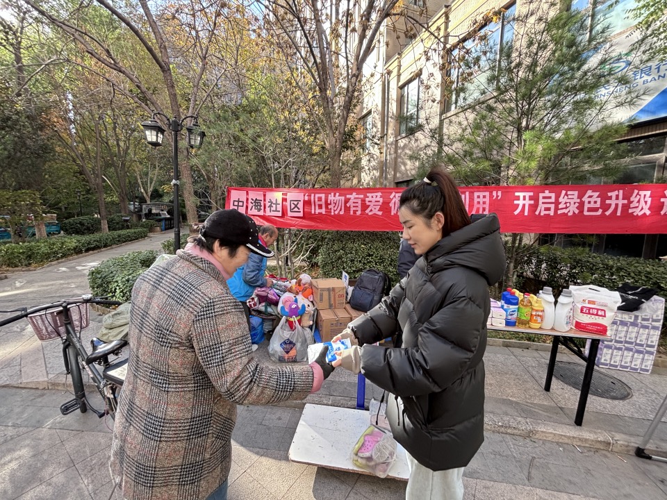 在第一场活动取得良好效果的基础上,中海九浩苑社区继续发力,再次组织了垃圾分类可回收物兑换系列活动——“旧物有爱 循环再利用”主题活动,旨在进一步深化居民的环保意识,鼓励更多人参与到日常的垃圾分类中来。活动现场,社区工作人员热情高涨,耐心指导居民进行可回收物品兑换,并解答了居民关于垃圾分类的各类问题。活动的举办不仅让居民兑换到生活用品,还学到了实用的分类技巧,进一步增强了居民对垃圾分类重要性的认识。