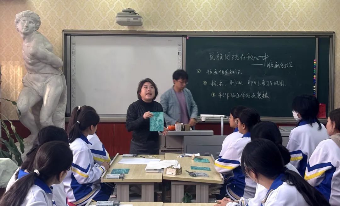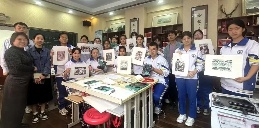 在北京市第十中学建校75周年教育教学实践研讨会上,这批版画作品作为特别献礼被郑重展示,吸引了众多师生与嘉宾驻足观赏。北京市第十中学东校区校方更是对这批版画作品给予了高度评价,认为它们不仅是对学校75华诞的一份珍贵礼物,更是对学校多年来致力于民族团结教育、培养全面发展的社会主义建设者和接班人的有力见证。