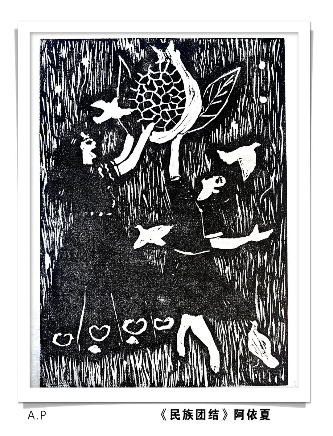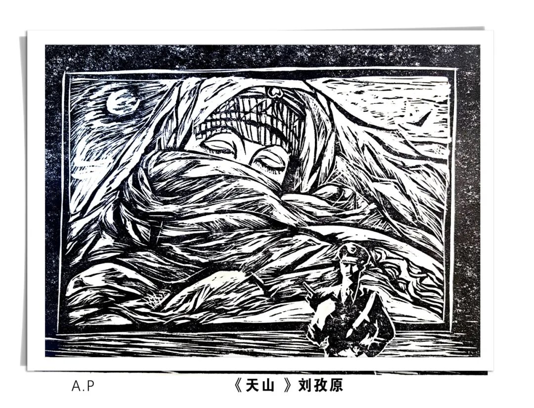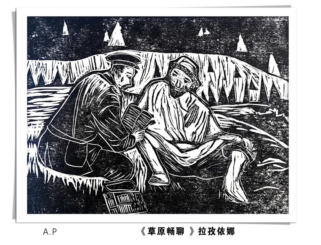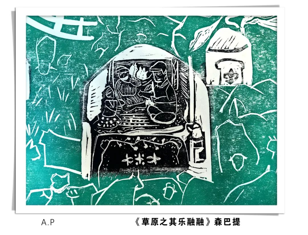 这批版画作品凝聚了学员们的心血与才情,在创作过程中,他们巧妙地将新疆的雪山草原、大漠胡杨、民族服饰、节日庆典等元素融入到画面之中,透过细腻的刀法、丰富的线条与巧妙的构图,描绘出一幅幅民族团结、和谐共生的美好画面。不仅展现了中华民族多元一体的和谐之美,更表达了他们对伟大祖国的深切热爱。