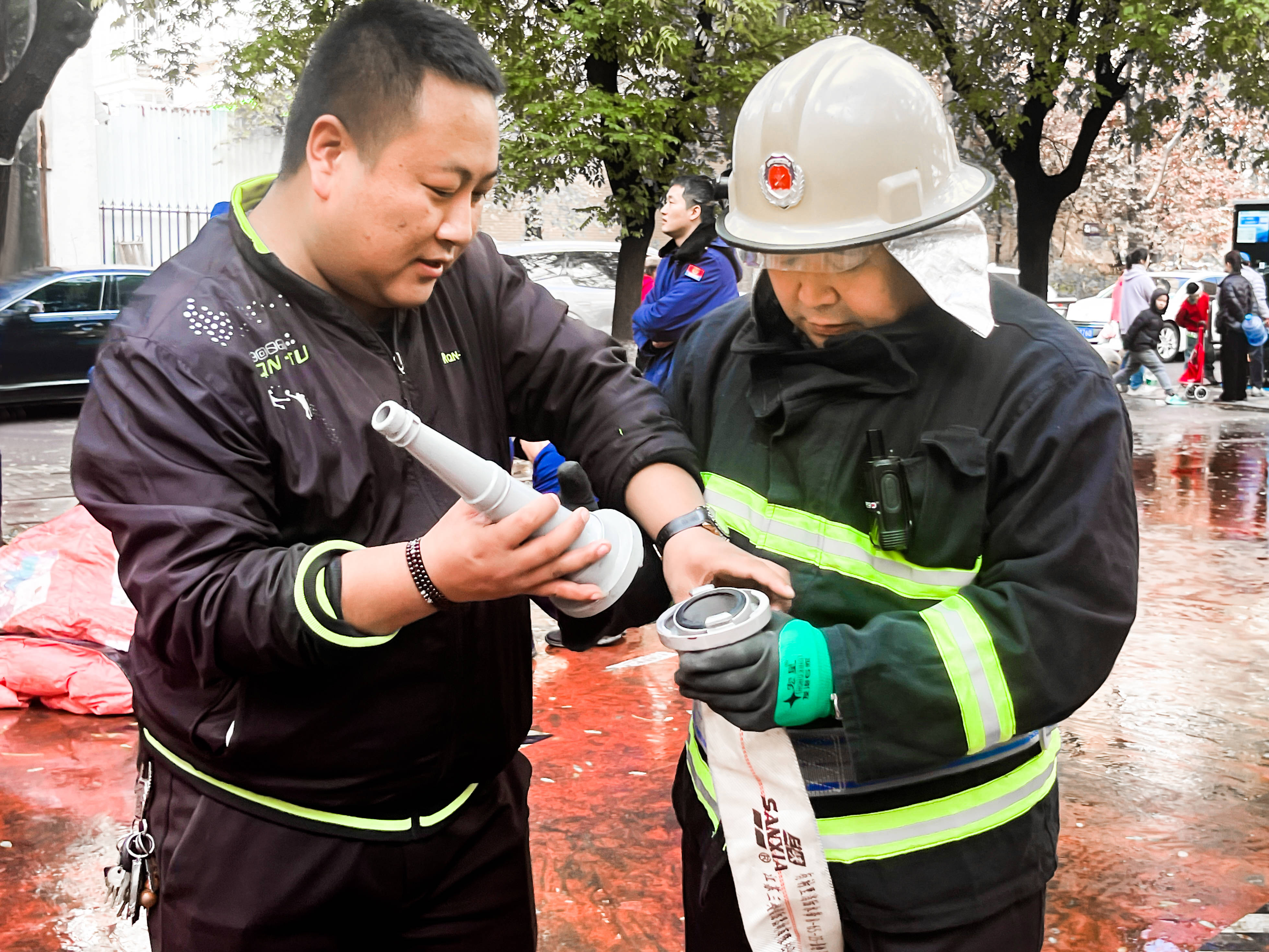 日前,北京市石景山区苹果园街道联合区消防救援支队、枫林一社区、和泓物业,在西山枫林一区广场,联合举办以“全面消防 生命至上”为主题的全国消防宣传月活动。进一步增强社区居民的消防安全意识,不断提高居民和物业的应急处置能力。