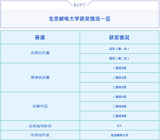 11月16日-17日,“中国网谷·华为杯”第三届中国研究生网络安全创新大赛决赛在武汉成功举办。大赛吸引了来自全国198所高校和科研院所的754支队伍报名参赛,其中北京邮电大学75支队伍参加初赛,经过激烈角逐,晋级决赛的26支北邮队伍全部获奖,共获得冠军、亚军(第一名、第二名)、网安之星(实网对抗赛道第一)、一等奖6项、二等奖7项、三等奖11项,获奖总数和一等奖总数均位居全国第一。
