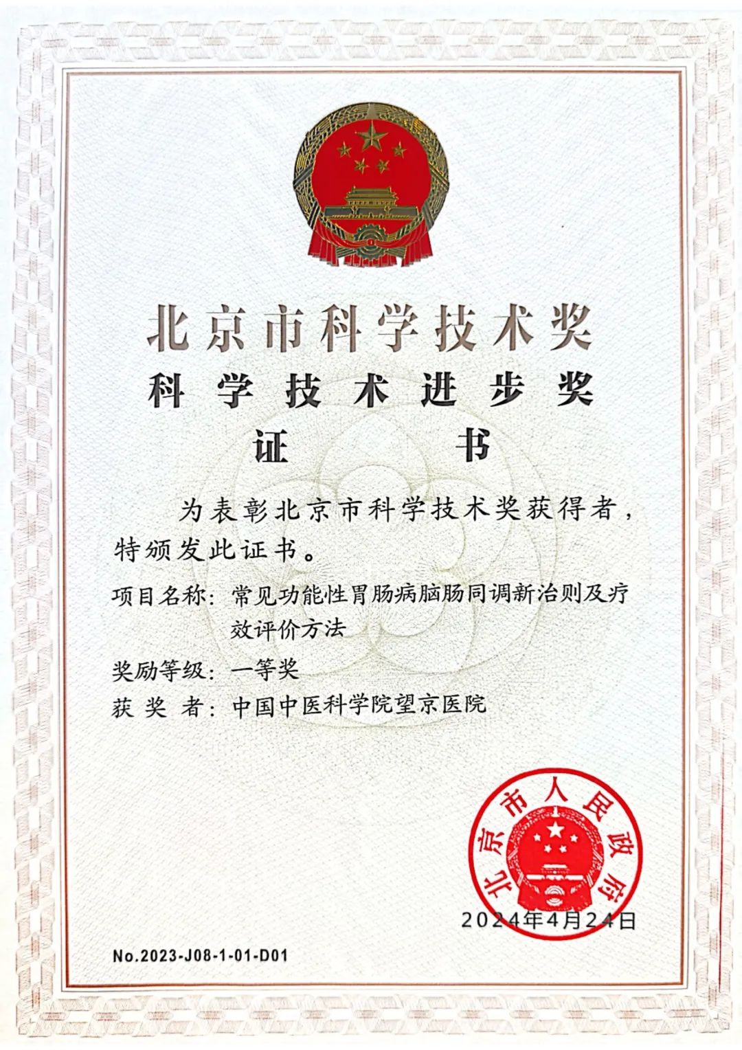 喜报|魏玮教授领衔项目“常见功能性胃肠病“脑肠同调”新治则及疗效评价方法”获北京市科学技术进步奖一等奖