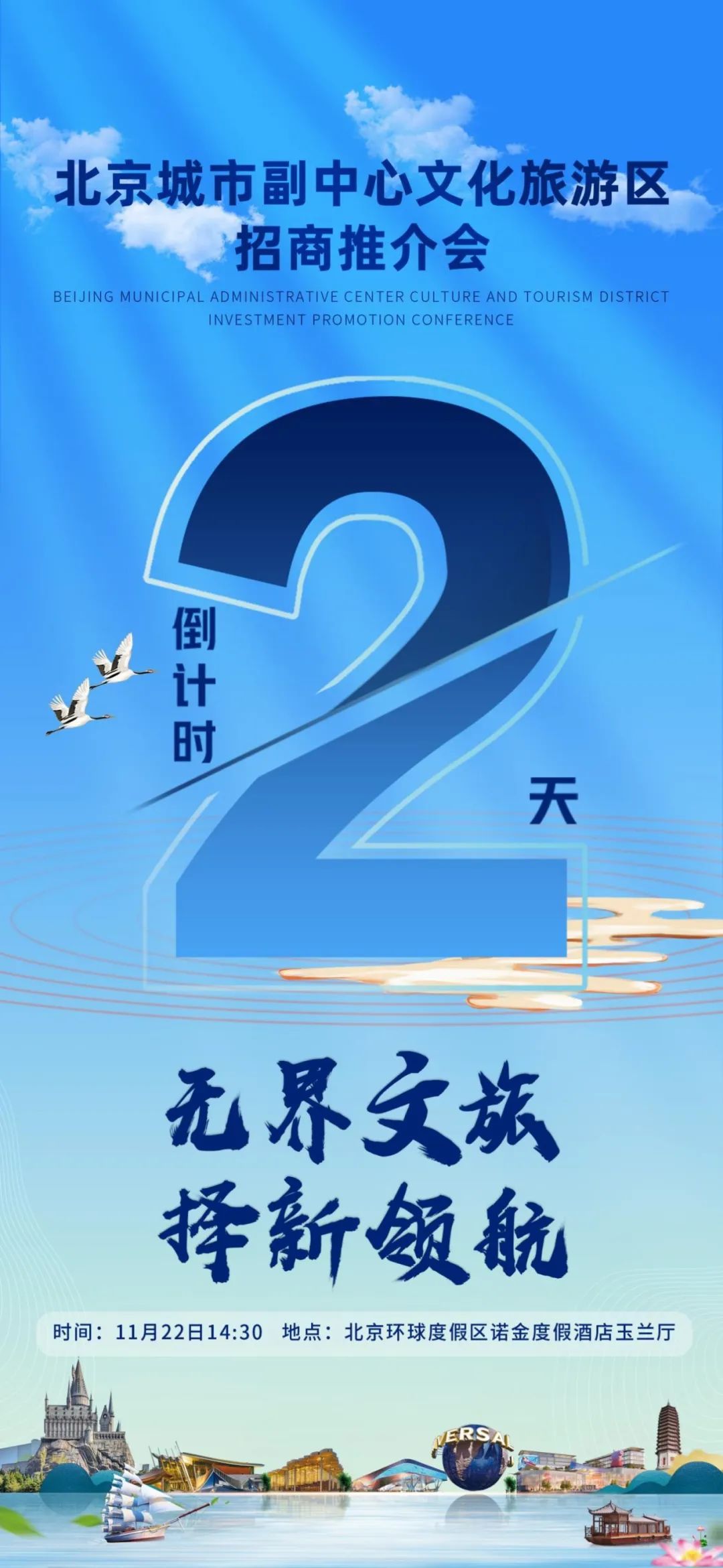 “无界文旅 择新领航”北京城市副中心文化旅游区招商推介会,将于11月22日(本周五)召开。