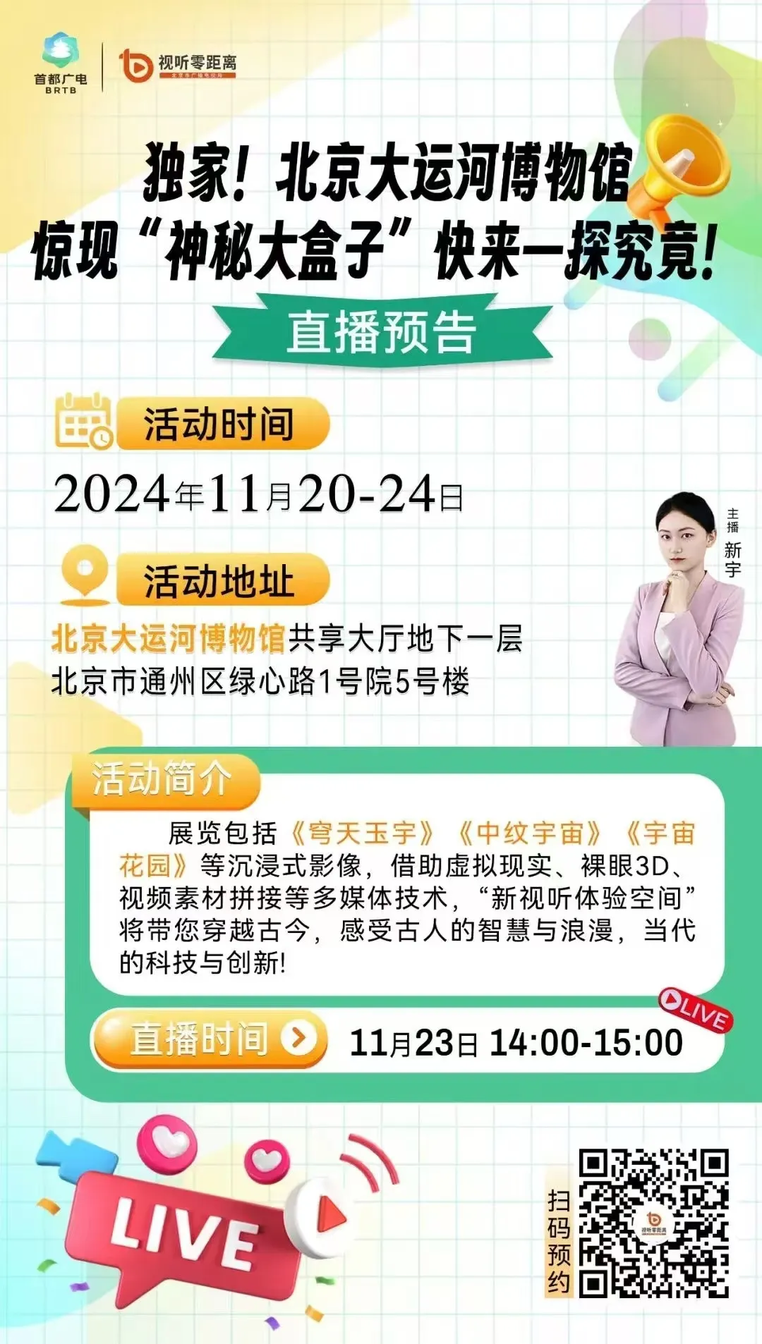 为了让更多无法亲临现场的朋友们也能感受到这场视听盛宴的魅力,我们特别安排了线上直播活动。扫描以下图中二维码即可预约,锁定直播时间,共享这场视听盛宴的每一个精彩瞬间!