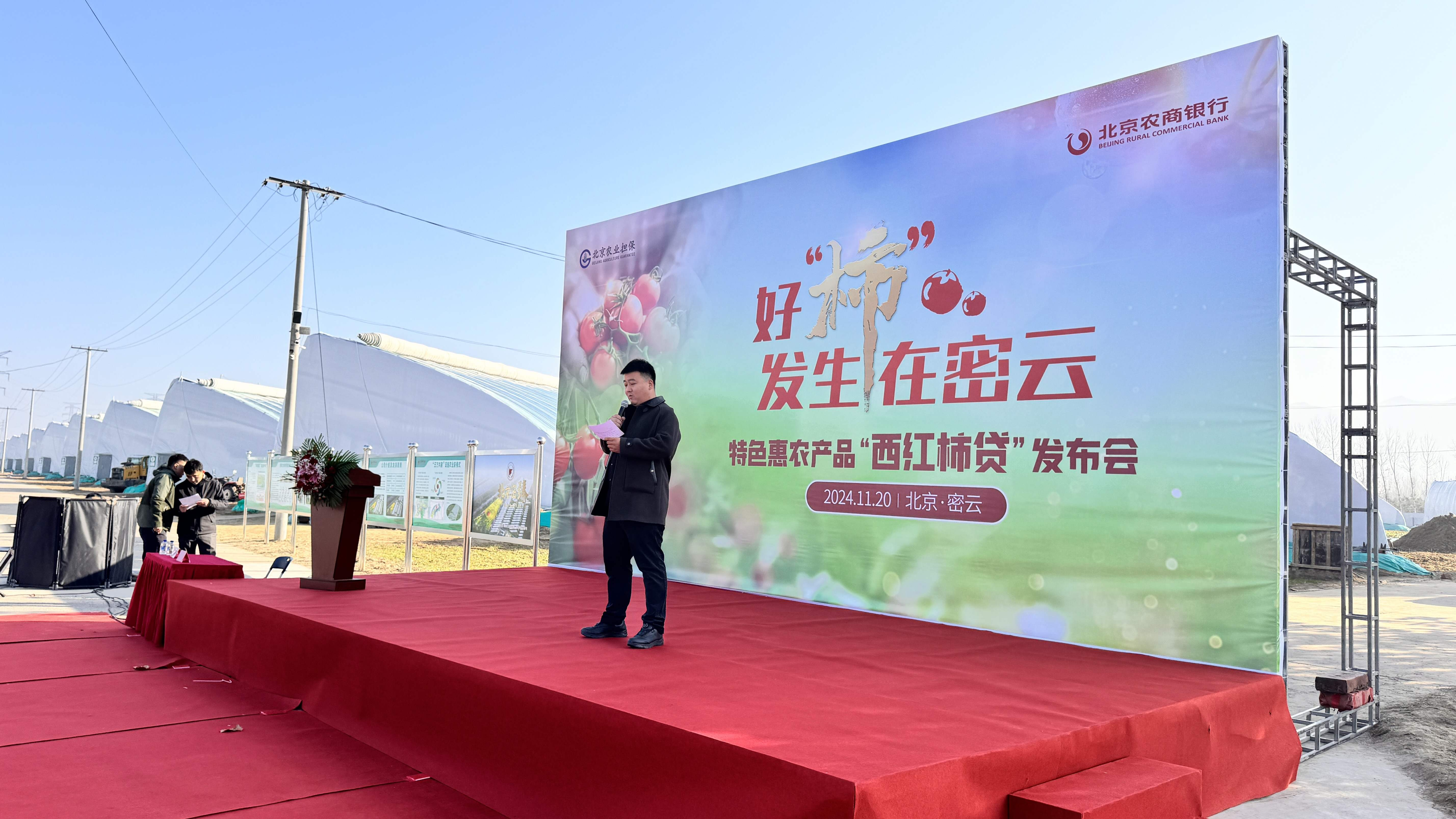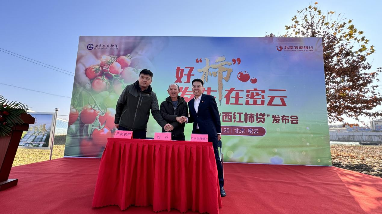 11月20日,北京农担“西红柿贷”发布会在密云区河南寨镇密臻农业公司隆重召开。密云区财政局、密云区农业农村局、密云区河南寨镇政府、北京市农业融资担保有限公司(简称“北京农担”)、北京农商银行、北京密臻农业发展有限公司相关领导出席发布会,共同见证“西红柿贷”产品的发布。此次产品发布不仅是金融机构创新服务“三农”的重要举措,也为区域内西红柿产业的蓬勃发展拉开了新的序幕,更为乡村振兴注入了新的动能。