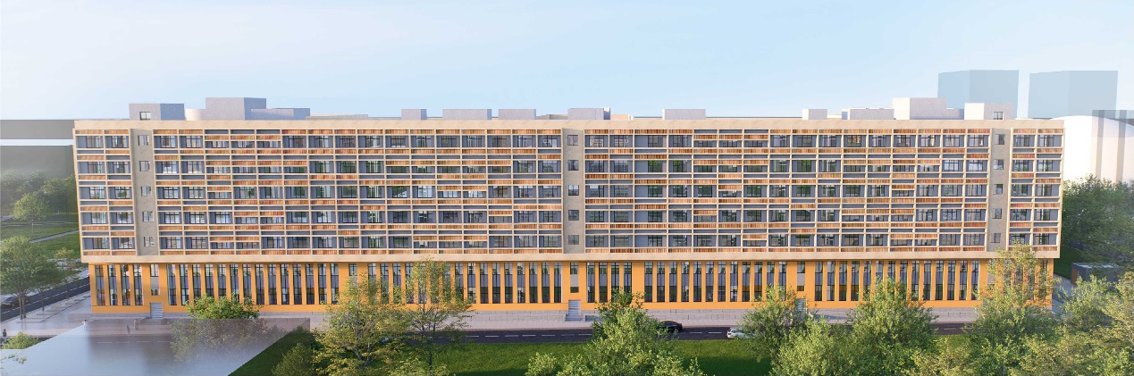 北京建筑大学大兴校区学生宿舍11号楼位于该校大兴校区东北部,建筑整体呈现“E”字形平面结构,总建设用地面积约17612.72平方米,总建筑面积56945.70平方米,其中地上建筑面积44453.51平方米,地下建筑面积12492.19平方米,主要建设内容包括学生宿舍、师生活动用房、地下人防、设备用房等,同步建设绿化、广场道路、室外管网等室外工程。项目预计2026年建成投用,将提供约3500个床位,有力北建大改善办学条件,并缓解未来招生规模增加带来的住宿压力。