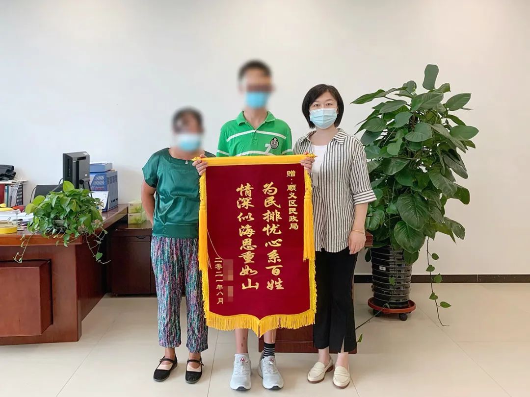 白华(右一)代表区民政局接收市民送来的锦旗。