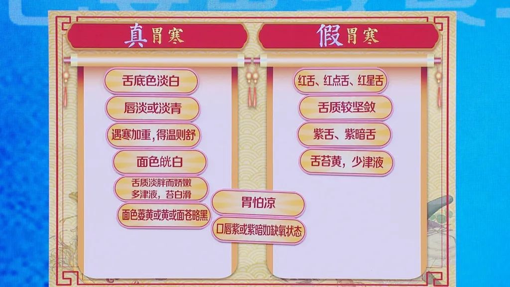 本期专家称,现在很多人的胃寒其实都是“假胃寒”“假胃凉”,其病机是阳气郁遏,不能温煦胃腑,从而出现胃寒或胃凉的症状。那真假胃寒到底有什么特点?如何区分呢?敬请收看!