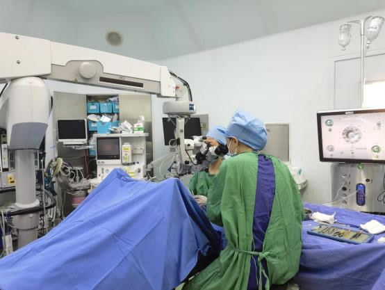 手术过程中,眼科团队凭借精湛的医术和丰富的经验,成功克服了囊袋薄脆如蝉翼、悬韧带细弱易断、晶状体核坚硬等难题,确保了手术的顺利进行。每一分钟都凝聚了医护工作者对患者细致入微的呵护,最终手术取得了圆满成功。