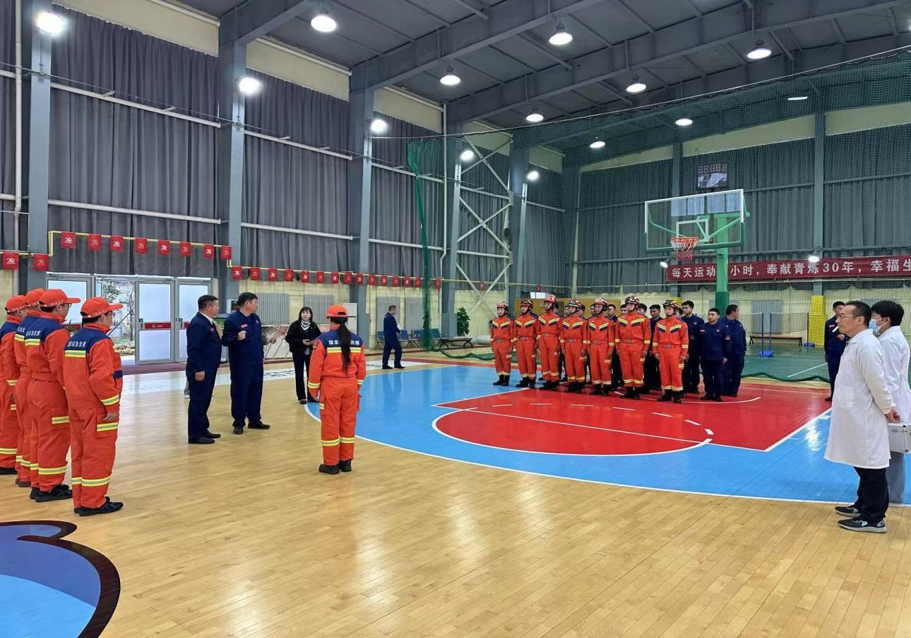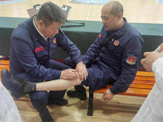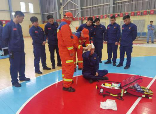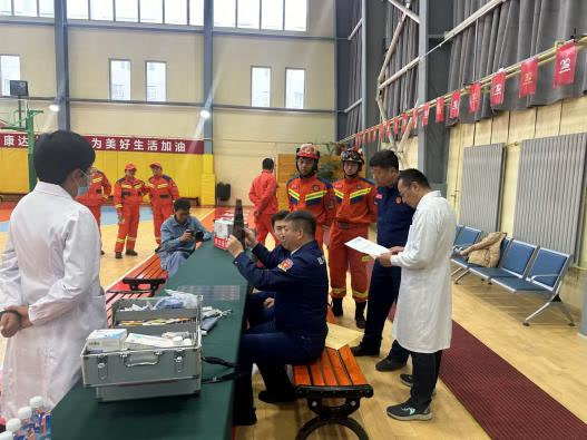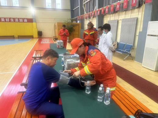 国家应急医学救援队在联合实训后为国家危险化学品应急救援青岛炼化队队员进行了医疗巡诊。