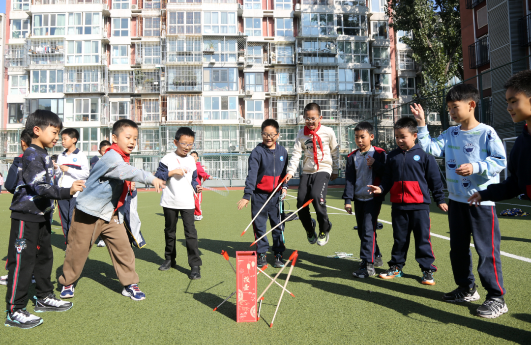 孩子们在操场上尽情享受传统游戏的乐趣——小学操场化身为古风竞技场,孩子们正在进行一场别开生面的“投壶”竞赛。无论是单人赛的专注与精准,还是大乱斗的热闹与欢笑,每一个瞬间都充满了童趣与挑战。