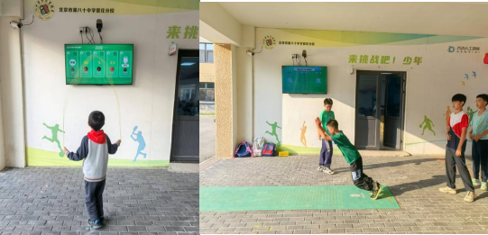 同时,学校还设置“来挑战吧”活动区域,利用人工智能统计跳绳数量、跳远远度,让学生科学适度锻炼。