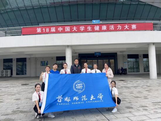 11月22-27日,第18届中国大学生健康活力大赛在江西宜春圆满落幕。本次比赛共设健身瑜伽、健身排舞、中国风健身舞3个大项,来自全国25个省(自治区、直辖市)的96所高校1055名运动员参赛。首都师范大学排舞队在体育教研部胡彦、王宇两位老师的带领下,共派出20名运动员参加7个小项的排舞比赛。队员们以整齐的动作、创意的编排、惊艳的队形和默契的配合,吸引了众多裁判老师和兄弟院校的运动员们的目光,在甲组的23所院校中脱颖而出,共获得:4个冠军、2个亚军、1个季军和1个第四名、甲组团体总分第一名、最佳团队奖、最佳表演奖、最佳编排奖。