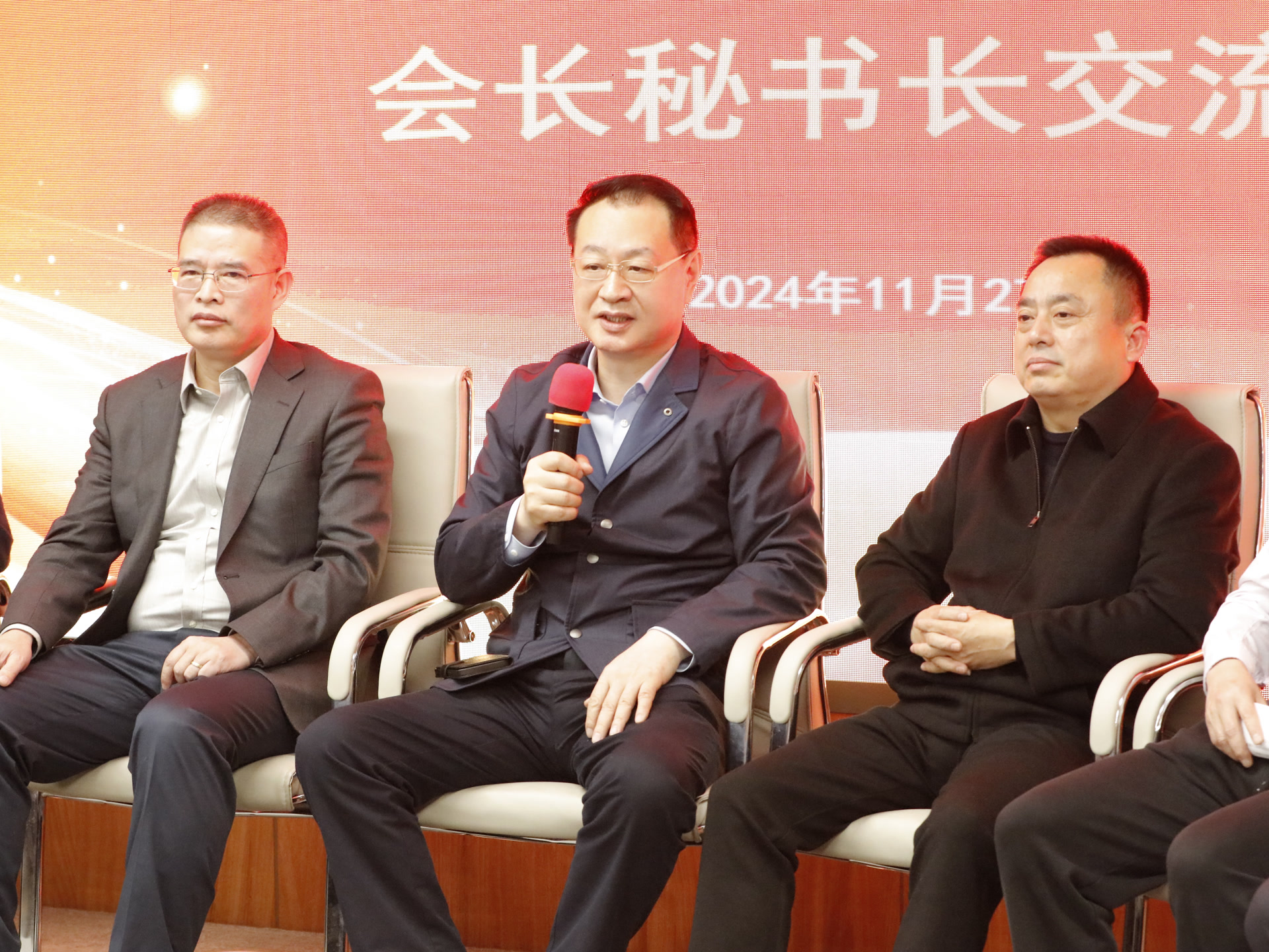 总商会会长施锦珊在会上致辞。他代表北京福建企业总商会对交流会的成功召开表示祝贺,对北京莆田企业商会所取得的工作成就给予充分肯定,并对在京闽籍商会的建设发展寄予厚望。他说,陈春玖书记既是北京莆田企业商会的创会会长,也是北京福建企业总商会的创会会长。在陈春玖书记的领导下,北京福建企业总商会历经20余年的发展,取得了许多辉煌的成就,积累了许多宝贵的经验,形成了党委、总商会、基金会“三位一体”齐头并进的良好发展态势,得到了各级领导和方方面面充分肯定和一致认可。总商会新一届领导班子要实现高质量发展目标,要把过去的优良传统和宝贵经验传承好,并发扬光大;通过资深会长联谊会的平台把为总商会作出突出贡献的资深会长团结凝聚在总商会周围,传播正能量;要围绕国家发展战略,成立新经济工作委员会,要把新经济、新业态、高科技头部企业和闽籍青年才俊吸纳加入总商会,大力发展新质生产力;要全力为会员企业服务。在为会员企业拓宽融资渠道、扩大市场营销、提升规范化管理水平、助力商事纠纷调解等方面提供助力,增强商会的吸引力和凝聚力。商会还应积极参与社会公益慈善事业,履行社会责任,树立良好的社会形象。