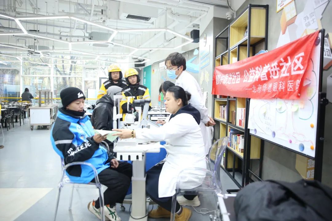 活动邀请到华德眼科医院的医生为新就业群体进行眼科检查,不仅筛查视力,还对干眼症、结膜炎、麦粒肿、白内障、青光眼等眼疾进行了专业检测,帮助他们了解眼部健康情况,耐心细致地讲解检查结果,针对其各自眼部问题,提出诊疗方案。
