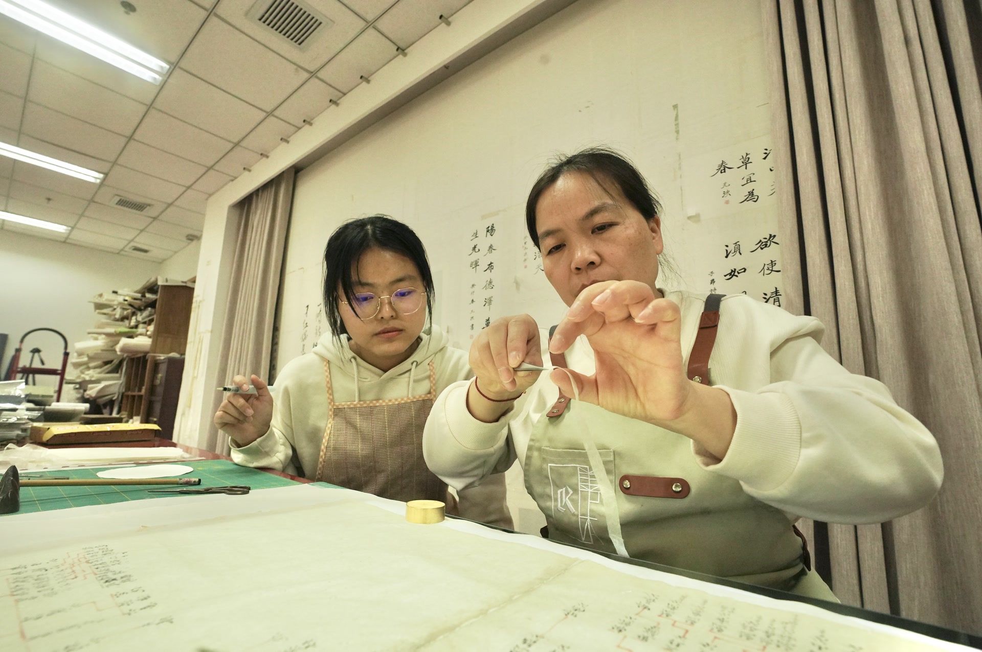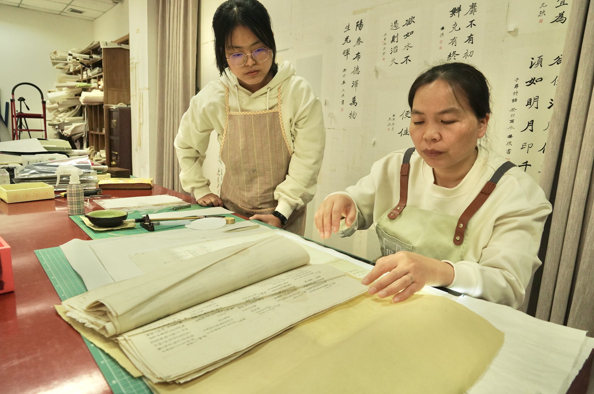近日,北京师范大学 图书馆启动了新一批古籍修复保护学生助理培训工作,师生们埋首故纸残页间,帮破损古籍重获新生。北师大校图书馆自2016年建成古籍修复室,开展馆藏破损文献修复和古籍修复技艺传习等工作,9年累计修复了馆藏破损古籍两万余叶。目前,图书馆的古籍修复工作有序开展,并面向学生开设线装书装帧的理论和实践课,在“世界读书日”活动中,加入传统刷印、拓印等技艺。