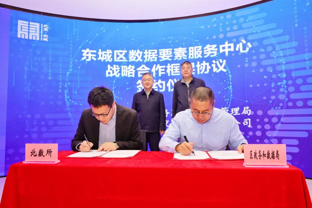 市政数局一级巡视员刘强,区委常委、常务副区长王华伟,中国银行北京分行副行长、党委委员章筱枫,北京银行北京分行副行长唐银华参加启动仪式,见证区政数局与北京国际大数据交易所签订东城区数据要素服务中心共建战略合作框架协议。