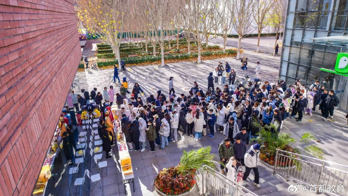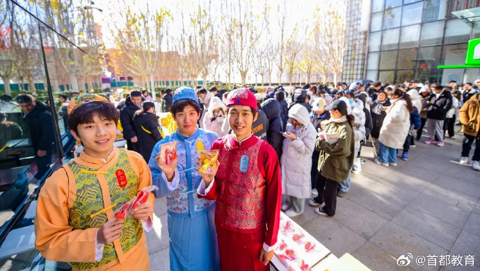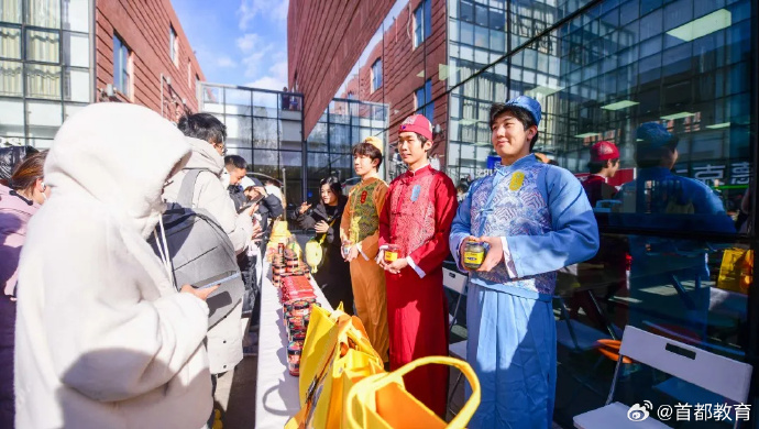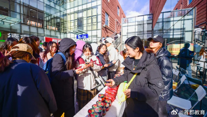 将碰撞出怎样的火花?近日,北京城市学院 携手中华老字号王致和,用一场别开生面的快闪活动,让传统美食腐乳成功“出圈”!在王致和产品展位前,工作人员讲解国家级非物质文化遗产——腐乳酿造技艺的奥秘,学生们与身穿代表腐乳颜色的青、红、白三种服装的卡通形象“王小和”合照打卡,了解品牌背后的文化传承故事。