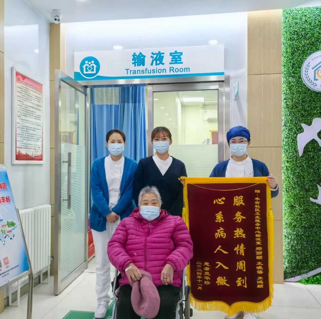 原来史阿姨患有风湿性疾病多年,行动基本靠轮椅,需要经常奔走各大医院进行治疗复诊。家里孩子也不在身边,史阿姨患病后照料之责全都落在患脑梗的老伴肩头。这次呼吸系统感染后,大医院人满为患,后来听说社区医院可以输液,于是史阿姨便由老伴推着来到了丰台社区卫生服务中心。因为对治疗流程不熟悉加上行动不便,所以在护士快要下班时间才赶到输液室,老人对此感到很抱歉,护士们却丝毫没有不耐烦,反而耐心安抚老人,让老人踏实输液。见老人推轮椅不方便,主动将老人安置在舒适之处,利落地收好轮椅与单据,又温言提醒其老伴:“您放心去买饭,这儿有我们呢。”