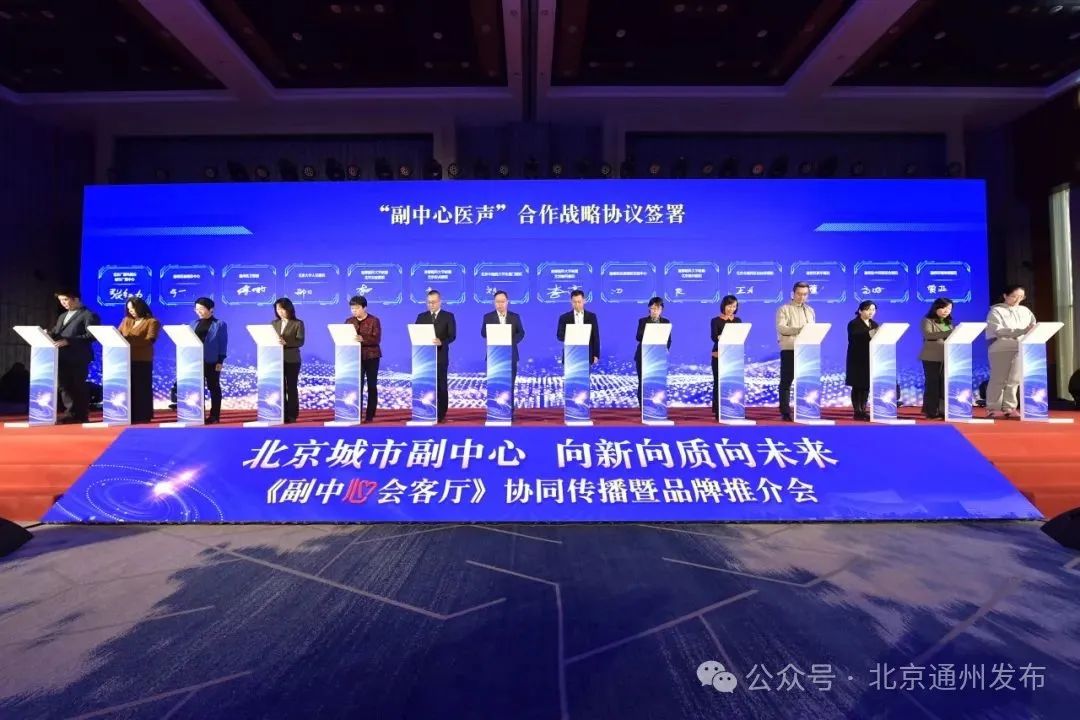 近日,在《副中心会客厅》协同传播暨品牌推介会上,“副中心医声”健康科普品牌合作协议签署,品牌将联合十余所医院及相关单位,与北京广播电视台城市广播副中心之声、通州区融媒体中心共同打造医疗信息综合平台,向副中心及周边区域居民提供权威、专业、优质的健康科普服务。