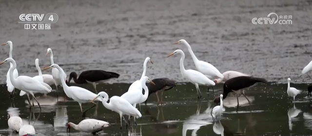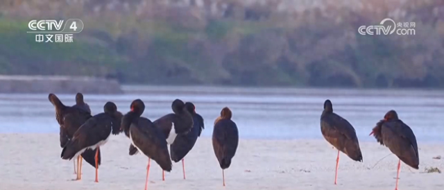 近日,鸟类摄影爱好者在陕西汉中一处湿地偶然拍摄到国家一级保护野生动物黑鹳和朱鹮同框的画面。画面中,黑鹳附近有数只朱鹮和白鹭,它们时而低空飞翔,时而嬉戏跳跃,三五成群,悠闲觅食,场景难得一见。